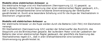 Das sollte zumindest bei deutschen Modellen egal sein. Die deutschen Modelle haben (egal ob mit oder ohne Batterie) einen Gleichrichter, der den von der Lichtmaschine kommenden Wechselstrom in Gleichstrom für die Hupe umwandelt.