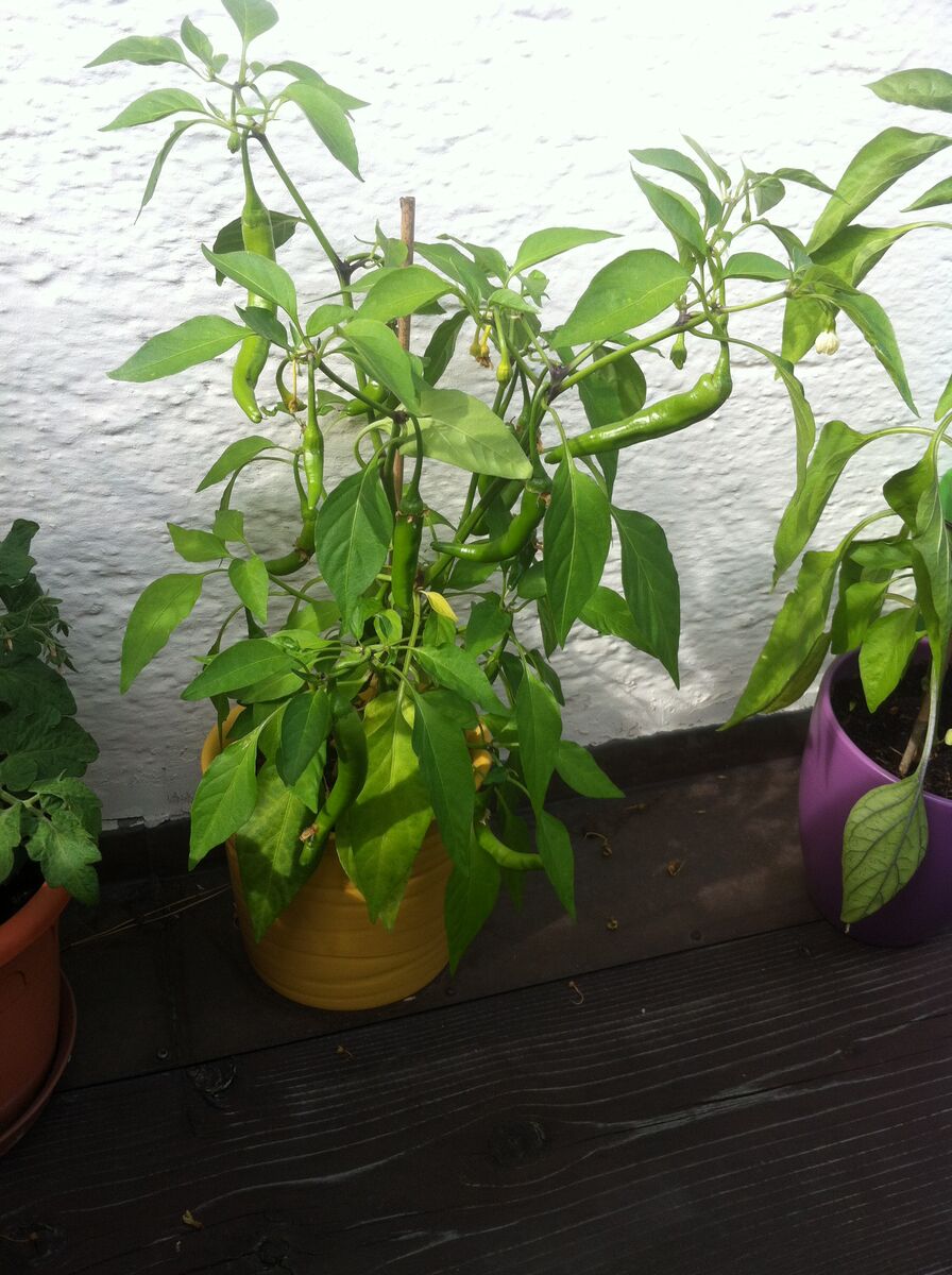 mir hat meine chili so leid getan im herbst. Während die tomaten abstarben, trug sie noch grüne früchte. da hab ich sie reingeholt. Scheint ihr zu gefallen, sie blüht und produziert weiter chilis :love: hab ich vorletztes jahr schon mit ner tomate probiert, die färbte aber nur ihre noch vorhandenen grünen tomaten rot und starb dann, die chili scheint ganz gut mit Wohnzimmer klarzukommen. ich will trotzdem noch mehr dieses jahr :)