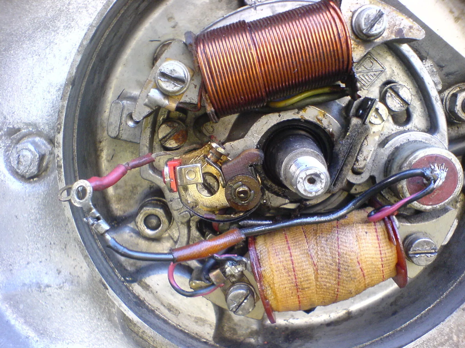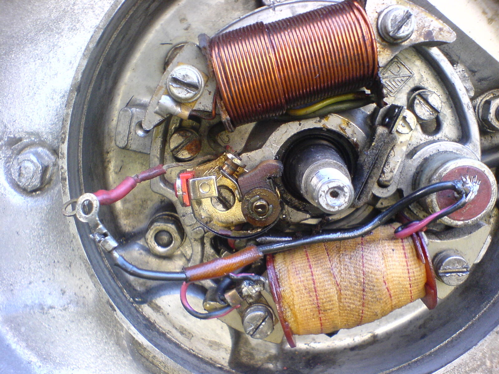 die 6 volt zündungen gehen, abgesehen vom verschleiß, eigentlich wirklich nicht kaputt. das was kaputt gehen kann, ist die zündspule hinten am block. laut eines GS schraubers aussm gaysf sind wohl bei den vespaspulen chronisch zu wenige windungen auf zu engem raum wodurch es häufiger probleme gibt. er propagiert die bosch zündspulen aussm kfz bereich. damit sollen auch hphe drehzahlen kein problem darstellen. aha.