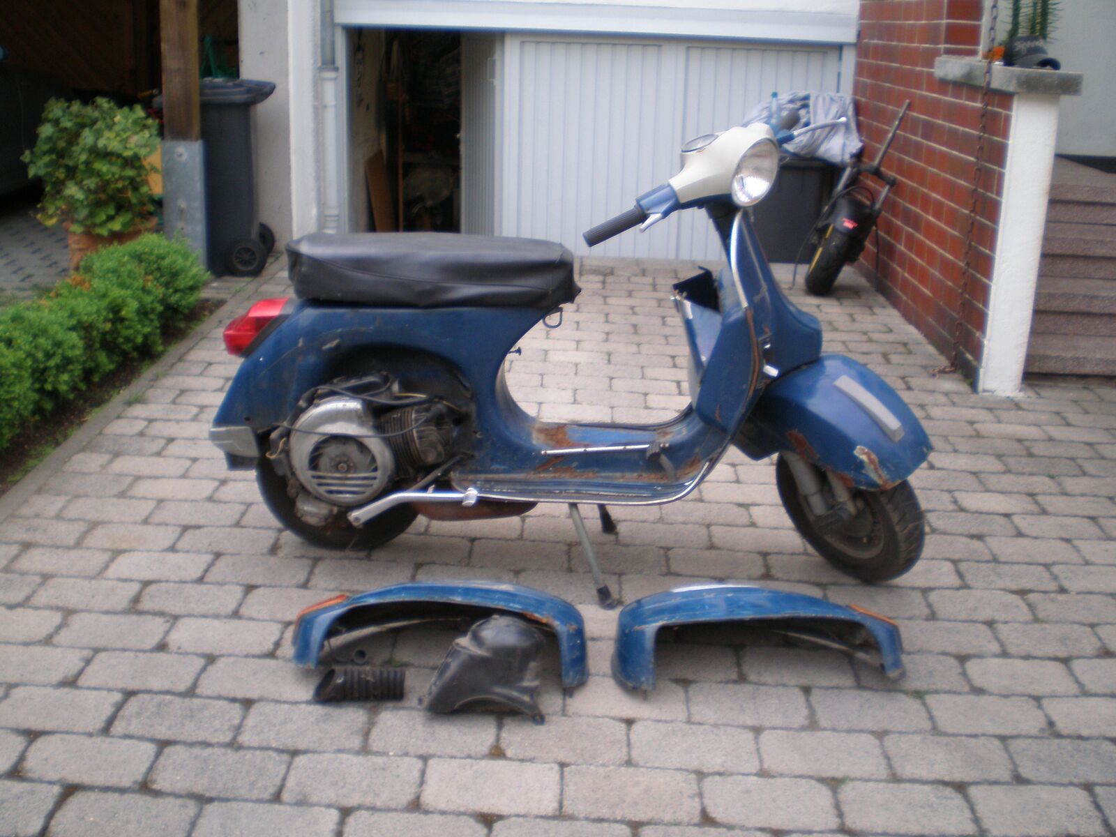 Der Rahmen hat kräftigen Rostbefall an einer sehr unangenehmen Stelle am Übergang von Vorder- und Hinterteil. Da überlappen mehrere Bleche, dementsprechend tief kann da der Rost sitzen. Erreichen wirst du aber nur die oberste Schicht, wenn du den Rahmen nicht in 2 Teile sägen willst. Im ungünstigsten Fall hast du den Roller dann teuer neu lackieren lassen und nach kurzer Zeit kommt der Gammel wieder von innen raus.