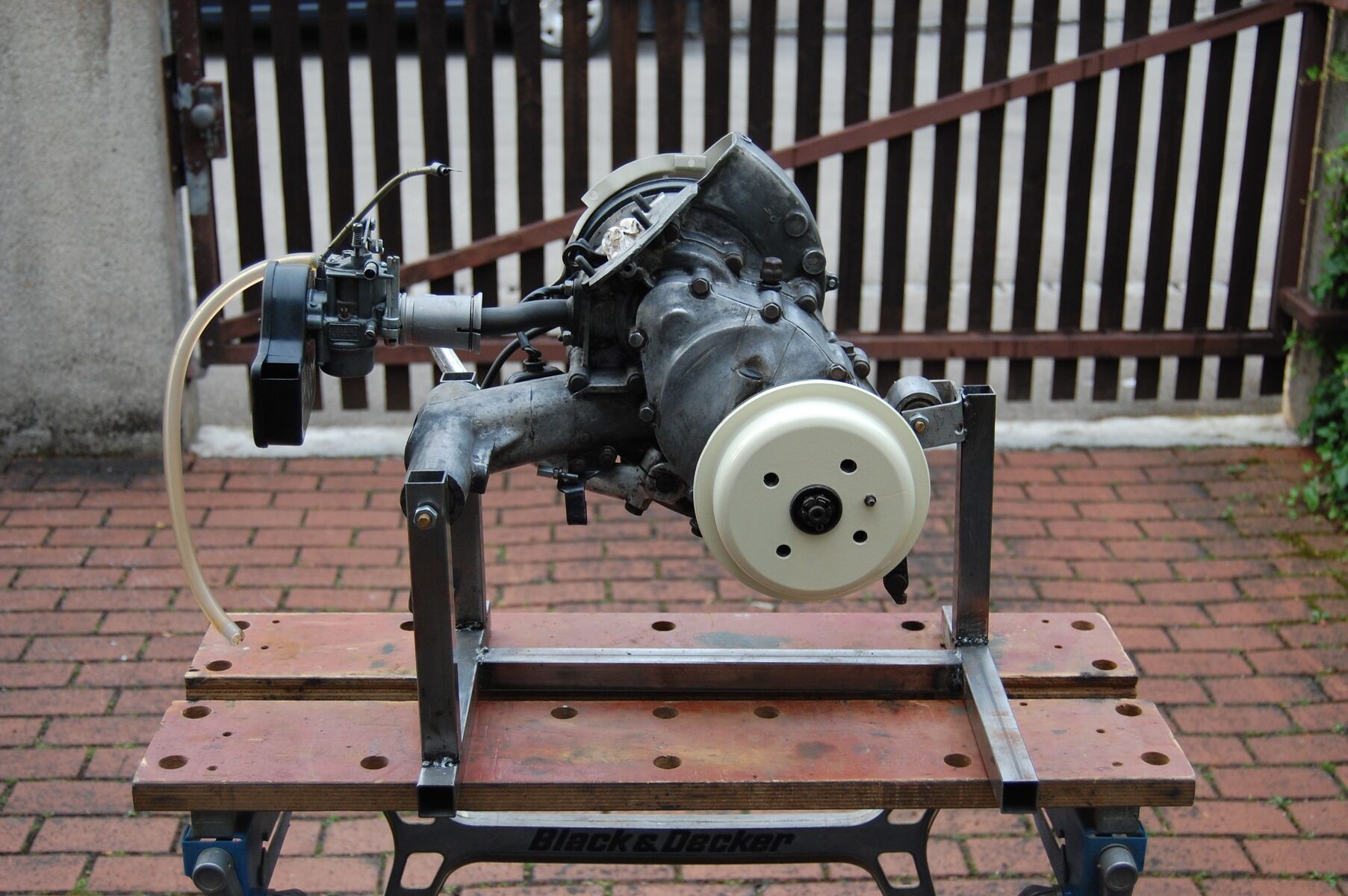 Ich habe mir einen Montageständer zusammengeschweißt, was echt praktisch ist.