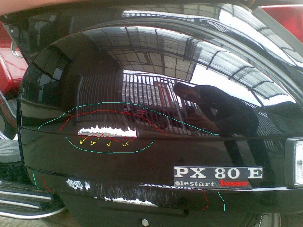 Z. B. die Seiten Backe die zwar keine Beule hat aber eine schöne Schleifspur.