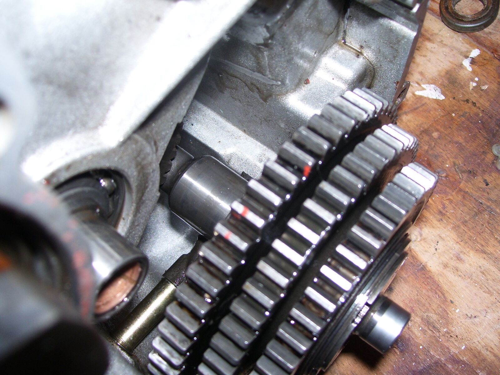Als ich nun den Motor wieder zusammenbauen wollte, bemerkte ich, dass ich die beiden Hälften nicht mehr ganz aufeinander bringe. Die Hauptwelle habe ich mit der Bremsankerplatte eingezogen, auch soweit, dass sie sich nicht mehr hat drehen lassen und dann ein bischen zurück. Ich denke das passt so, oder?