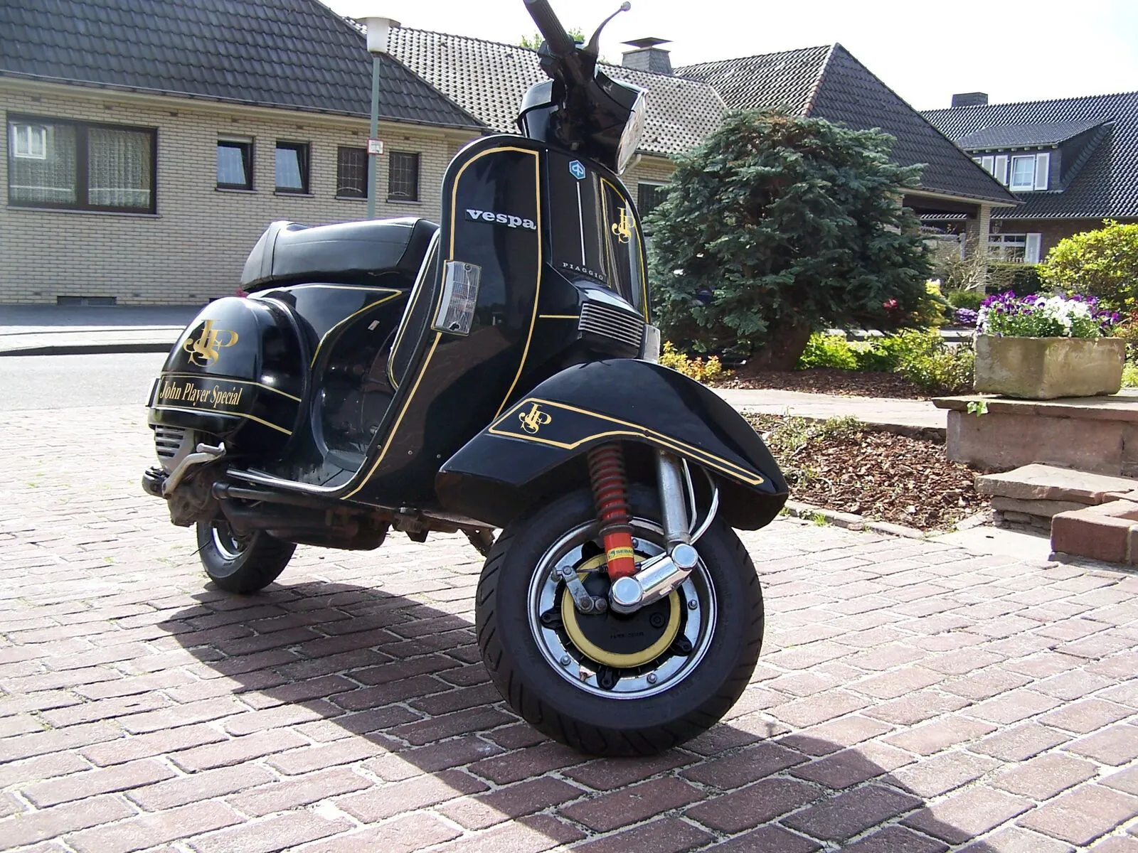 Huhu, da meine schwarze PX vom Lack her nicht mehr ganz perfekt ist, habe ich mal gedacht, wie man die vielleicht noch etwas umgestalten könnte. Da kam mir die Idee die nach der "John Player Special" Zigarettenschachtelvorlage zu gestalten. So gabs früher auch Rennautos, die mir schon immer gefielen.