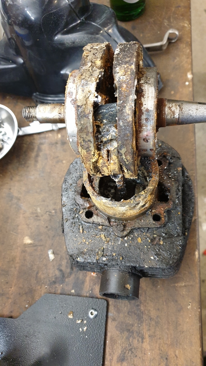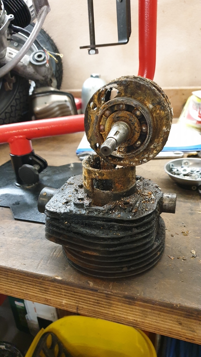 der Kolben macht keine Bewegung, Kurbelwelle genauso. Wir mussten alles um den Zylinder zerlegen um es so wie es da steht raus zu holen.