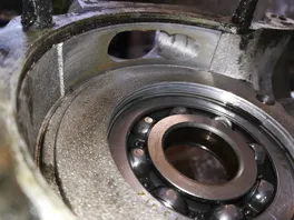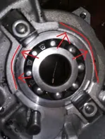 2. Das Lager wird in Richtung Kupplung eingeschlagen bis zu dem kleinen Anschlag der in deinem Gehäuse weggebrochen ist und mit den beiden Laschen notdürftig ersetzt wurde. Sieht zwar nicht schön aus, scheint aber zu funktionieren. Da gibts extra ein Reparaturblech das man nicht mit 2 Stehbolzen und M6 er Muttern verschraubt.