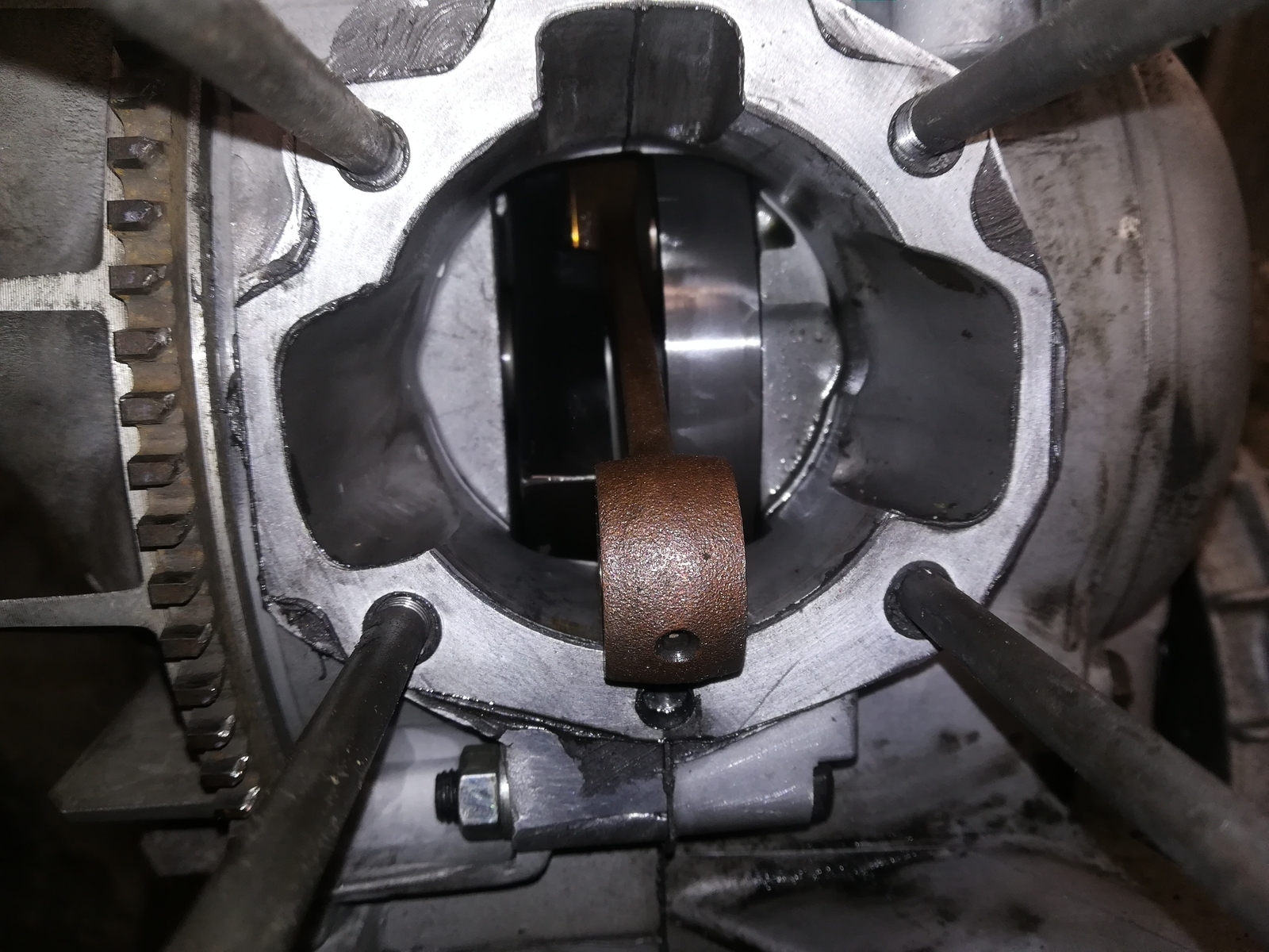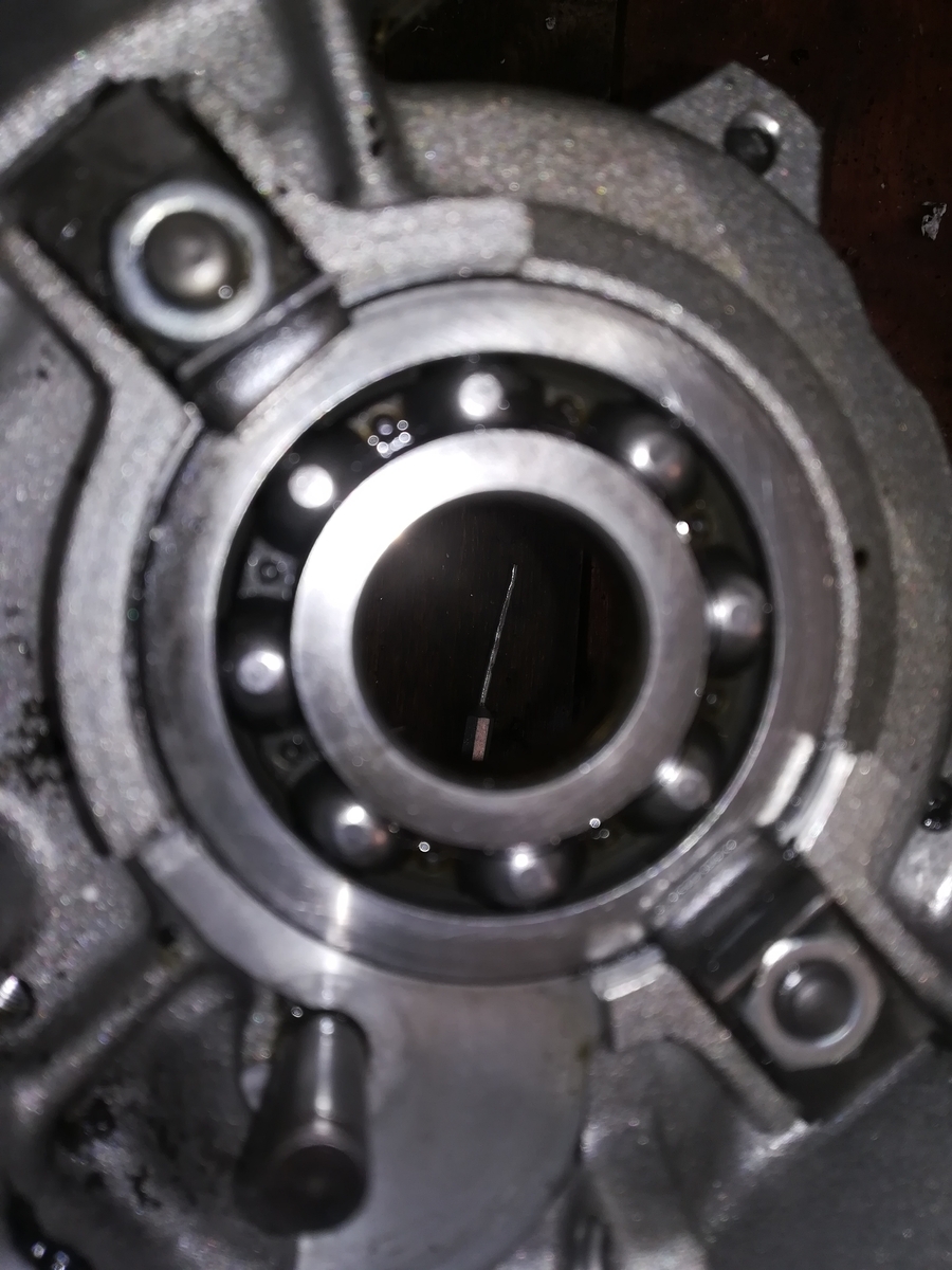 2. Das Lager wird in Richtung Kupplung eingeschlagen bis zu dem kleinen Anschlag der in deinem Gehäuse weggebrochen ist und mit den beiden Laschen notdürftig ersetzt wurde. Sieht zwar nicht schön aus, scheint aber zu funktionieren. Da gibts extra ein Reparaturblech das man nicht mit 2 Stehbolzen und M6 er Muttern verschraubt.