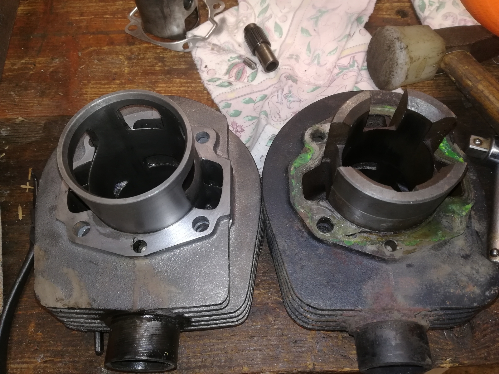 Auf dem Zylinder Bild ist links der 125ccm conversion Zylinder, rechts ein PX 80 Zyl.