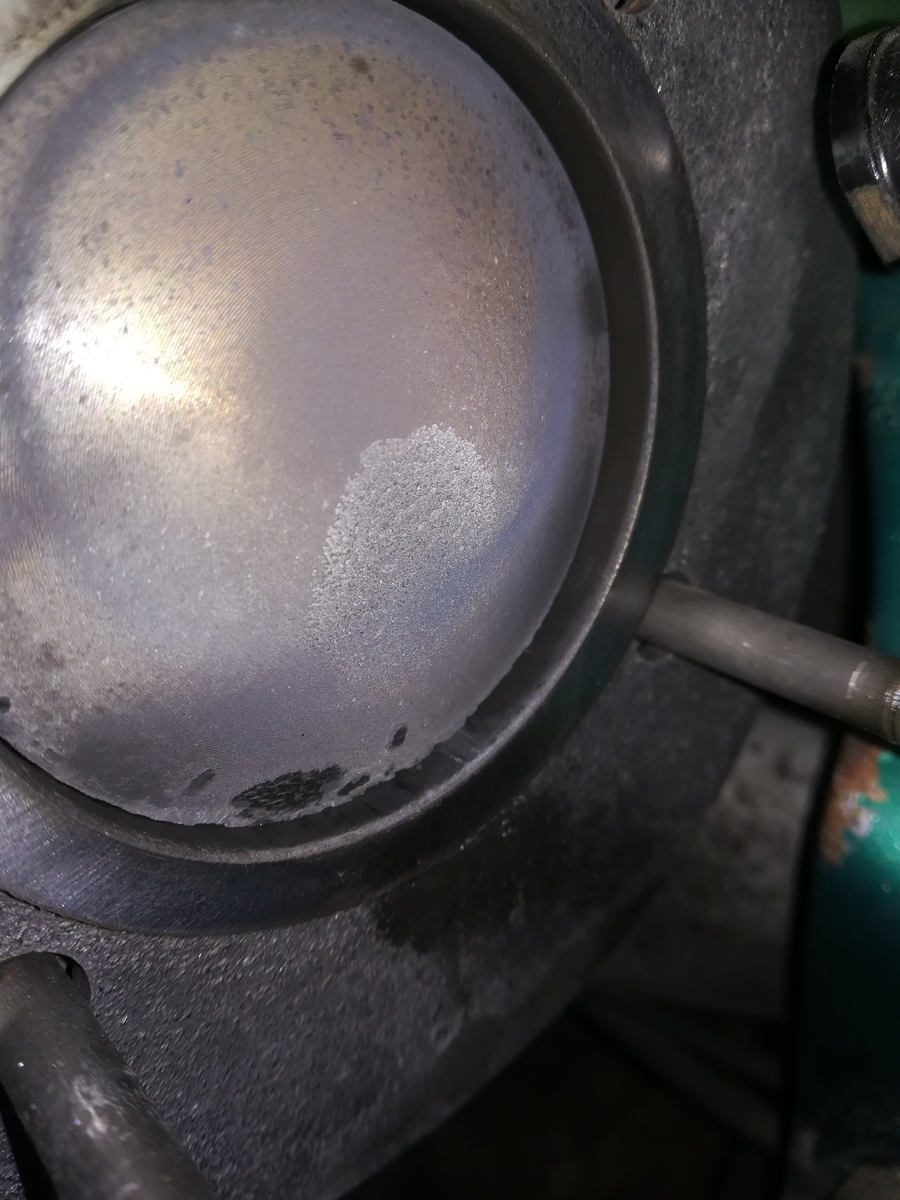 Der Conversion Zylinder ist Schrott. Der "Profi" hat den Zylinderkopf schief runtergeschliffen auf ein Quetschkante Maß von 0,55 mm! Das hat der Kolben nicht lange mitgemacht. Das Kolben Dach hat fast ein Loch.