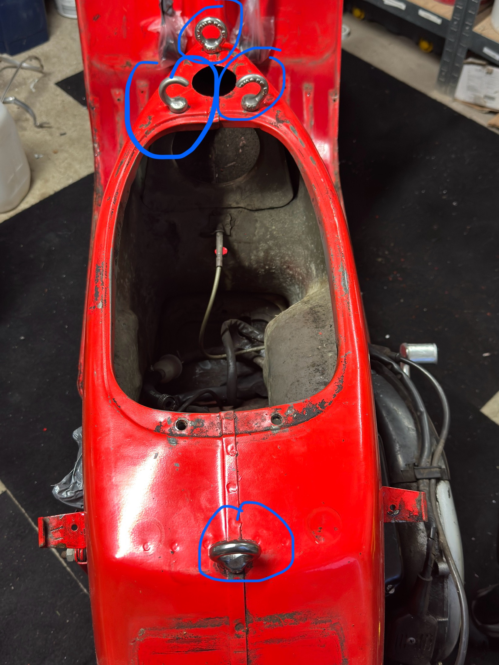 Bitte nicht lacken,mattes Rot oder Orange kommt beim polieren immer gut zurück. Hatte letztens ne PK in rot , ab ins Action und für nen zehner nen Polierteller fürden Akkuschrauber gekauft + einen Lackreiniger . Dann mal 2 Stunden Liebe reingesteckt .... besser als jeder Neulack