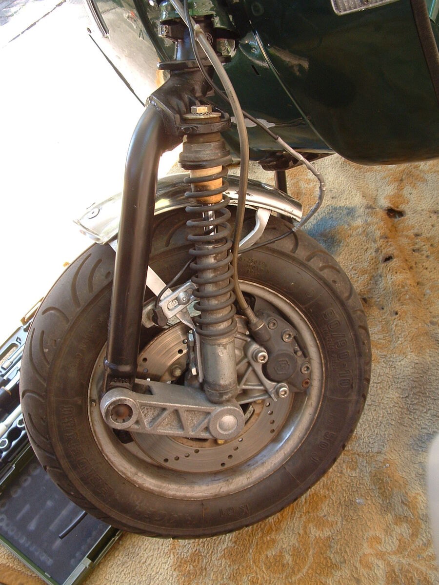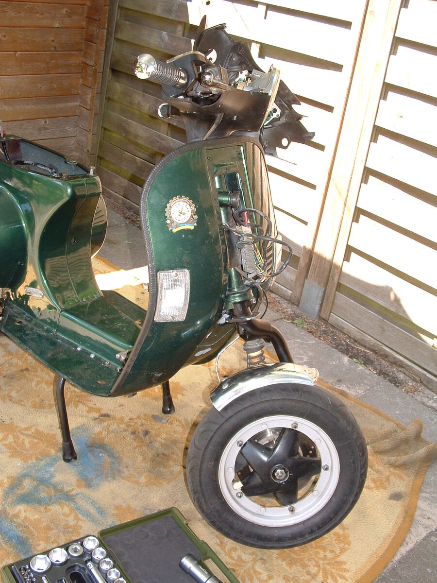 Nun ist die Trommel aber nicht die einer PK sondern schaut aus wie die der "Grimeca '98" Bremse bzw. einer meiner Vespa-bewanderten Kumpels meinte, es sei sogar eine SKR-Gabel verbaut.