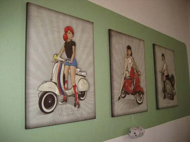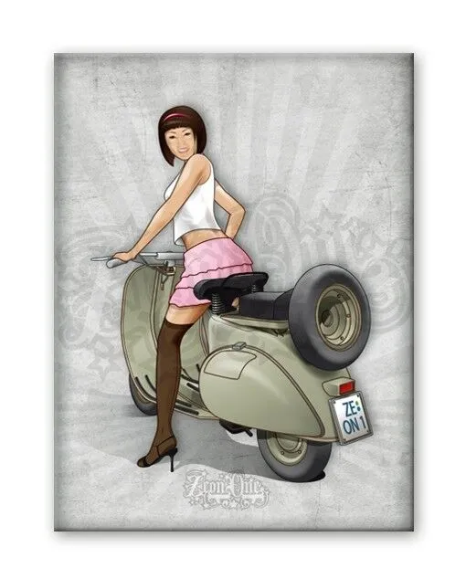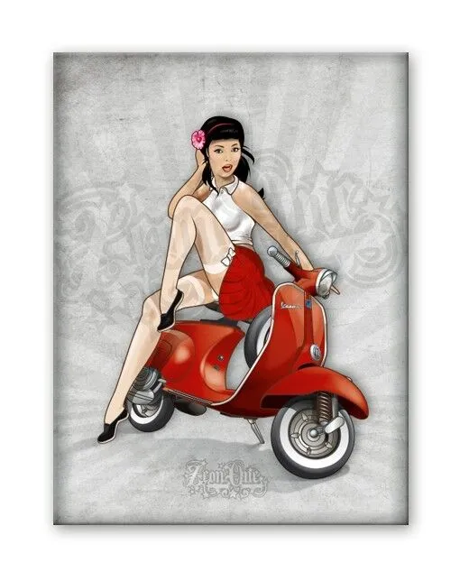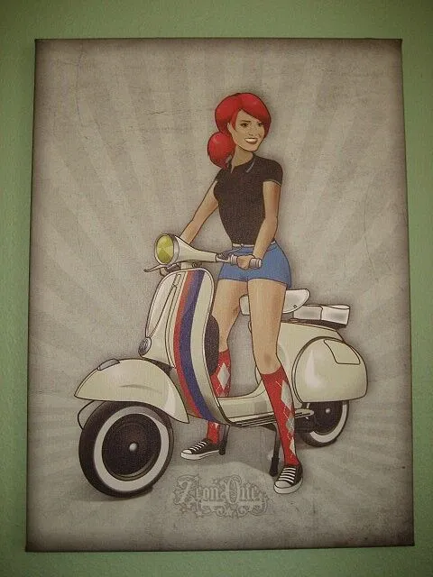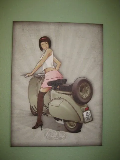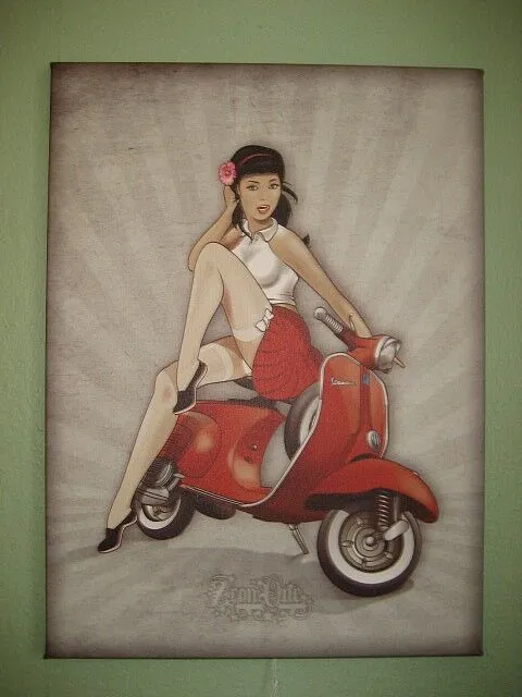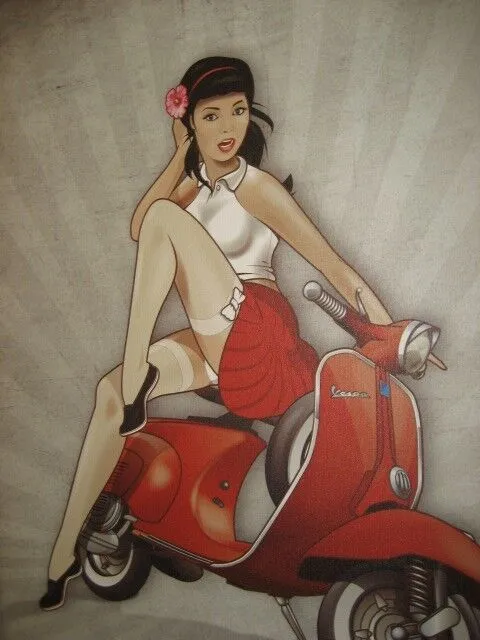 Artwork-Prints! Hochwertige, gerahmte Vespa-Pinup-Drucke auf Canvas (Leinwandstoff)