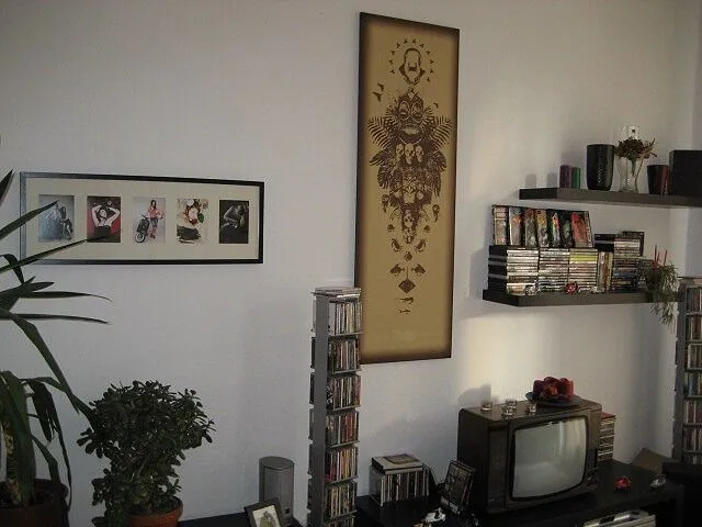 so, hier die versprochenen fotos. leider manche etwas schief/unscharf bzw. perspektivisch verzerrt. bin irgendwie nicht so der große fotograf. außerdem noch ein, zwei andere prints, die sich besser im zusammenhang fotografieren lassen (weil die frage nach der wirkung im wohnzimmer kam).