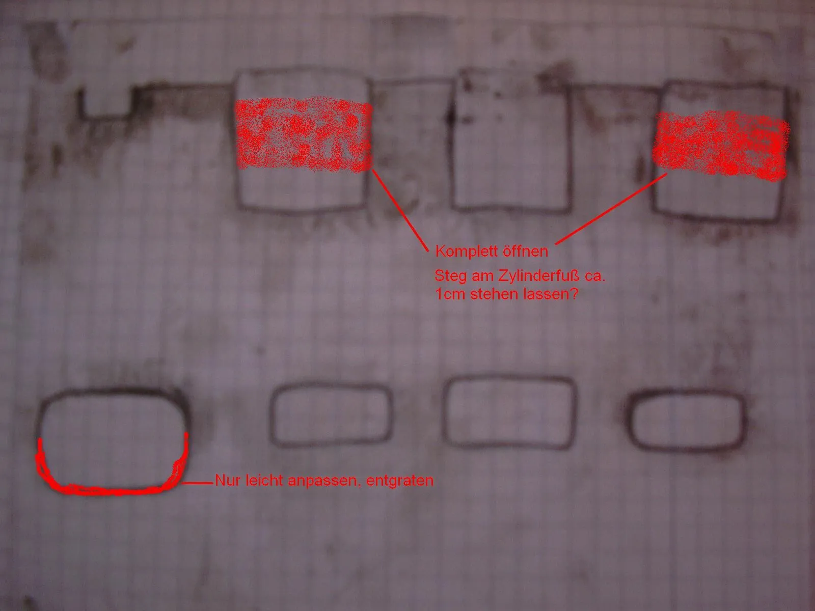 • Laut anderen Thread müsste ich die Überströmer am Zylinder so ausfräsen: