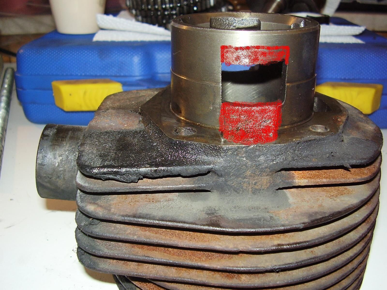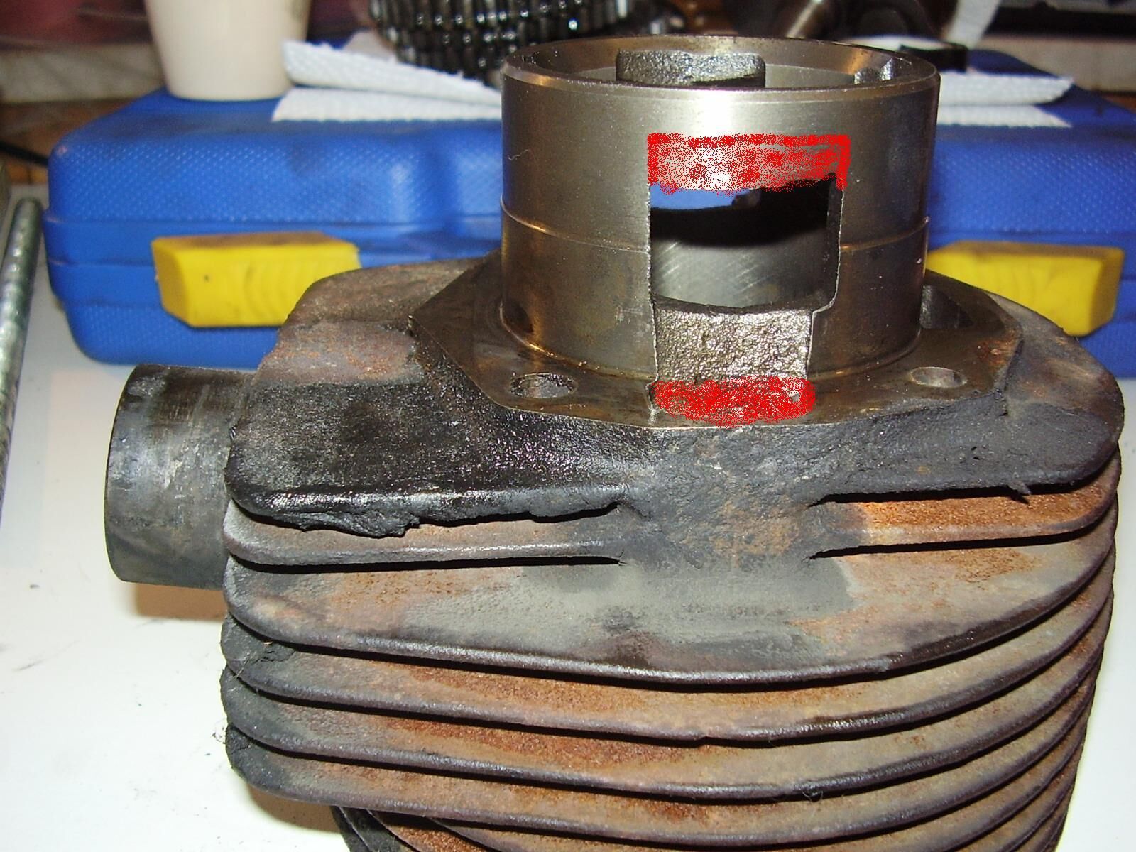 Zeigt keine Reifen (im Gegensatz zum Kolben) auf der Lauffläche. Laut FM-O-Tuning muss der zu sehende Überströmer und der genau dahinter nach oben gezogen werden oder?