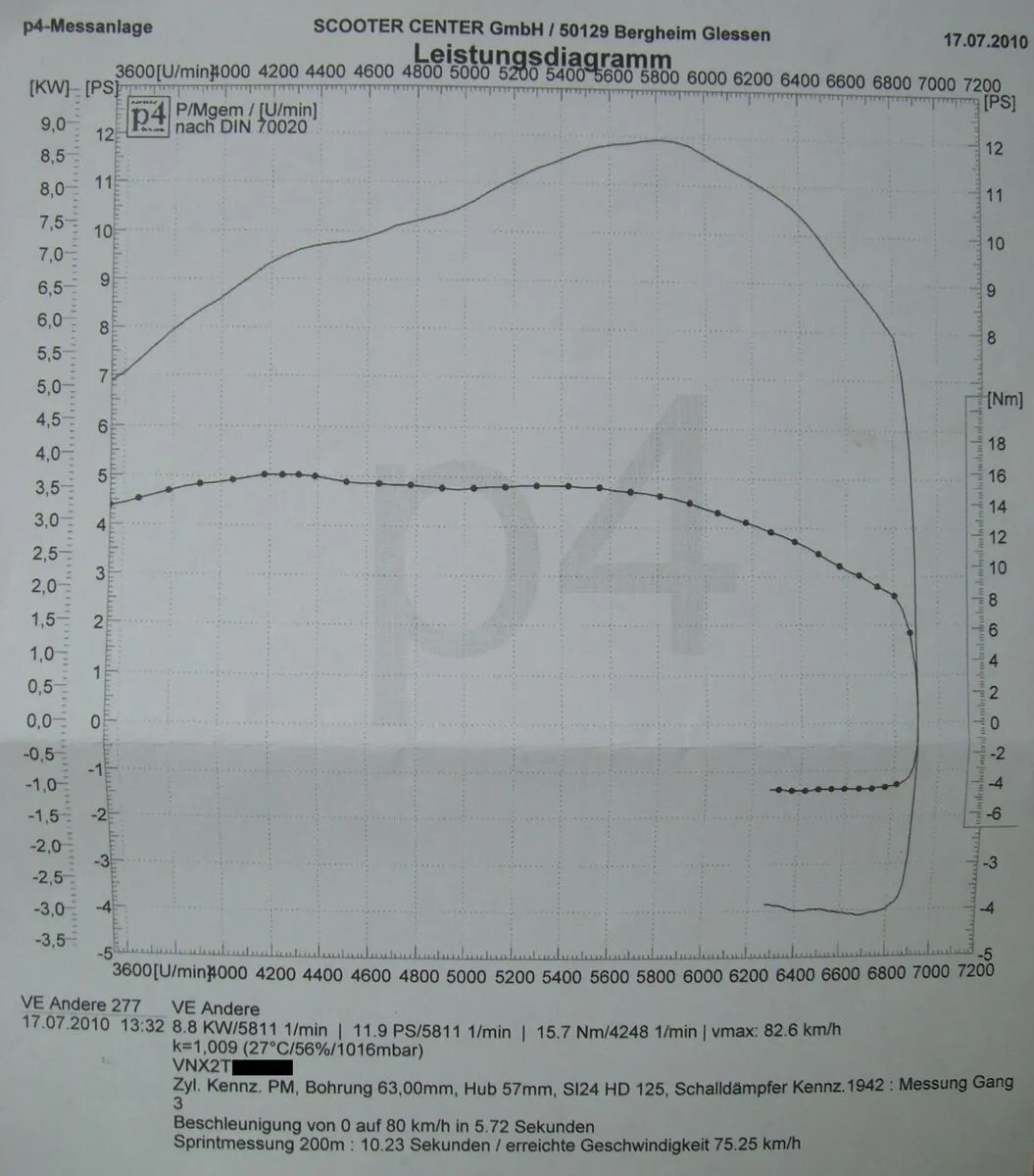 Also, die 10 PS PX die ich kenn hat mit Sip Performance knapp ü 9 PS am Hinterrad (lt Prüfstand); VMax gute 105. Von dem her saubere Arbeit, denk doch auch dass Du damit zufrieden sein kannst... Hallo?!? - is'n O-125iger Pott...