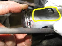 könnte mir jemand sagen, ob der Kolben defekt ist? Habe die zweifelhafte Stelle makiert.