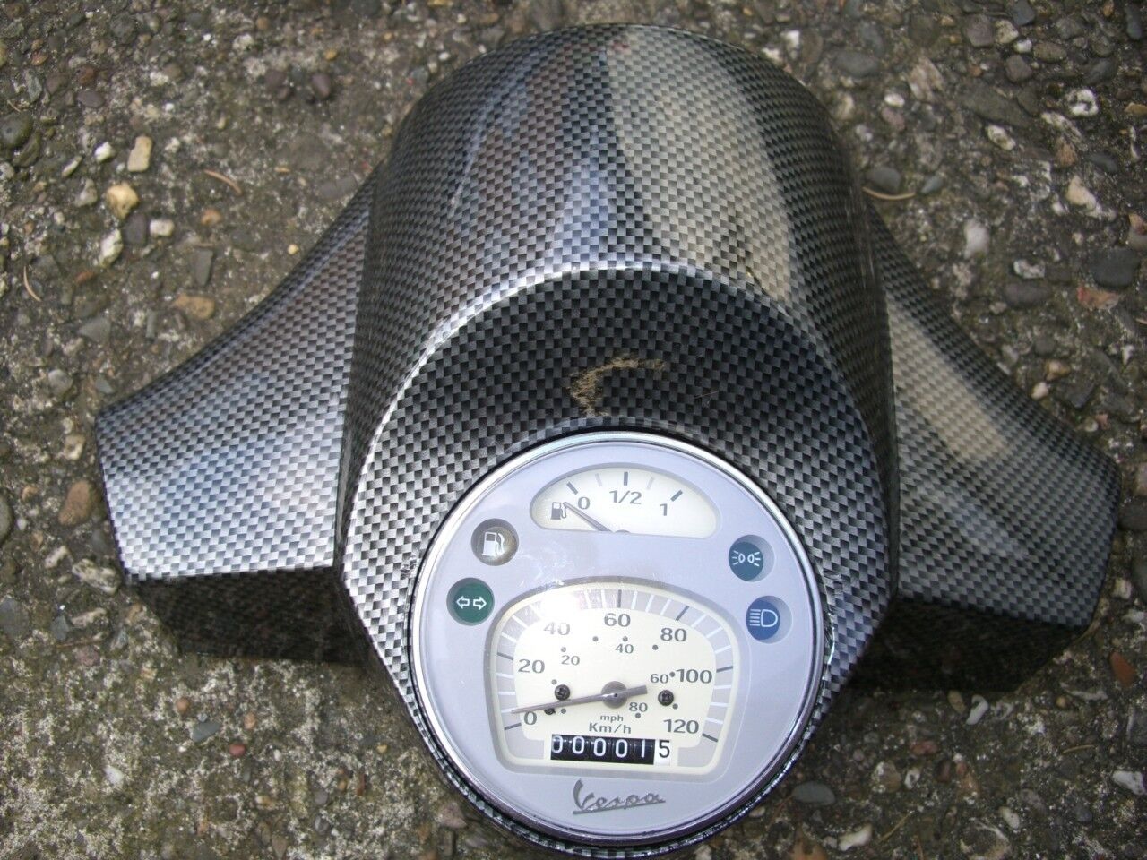 Dies bedeutet, dass der Tacho aus einer Vespa Millenium genommen werden muss und dass das Zündschloss ins Handschuhfach muss. Nicht schlimm ich wollte eh den Klargalsscheinwerfer der Millenium verbauen.