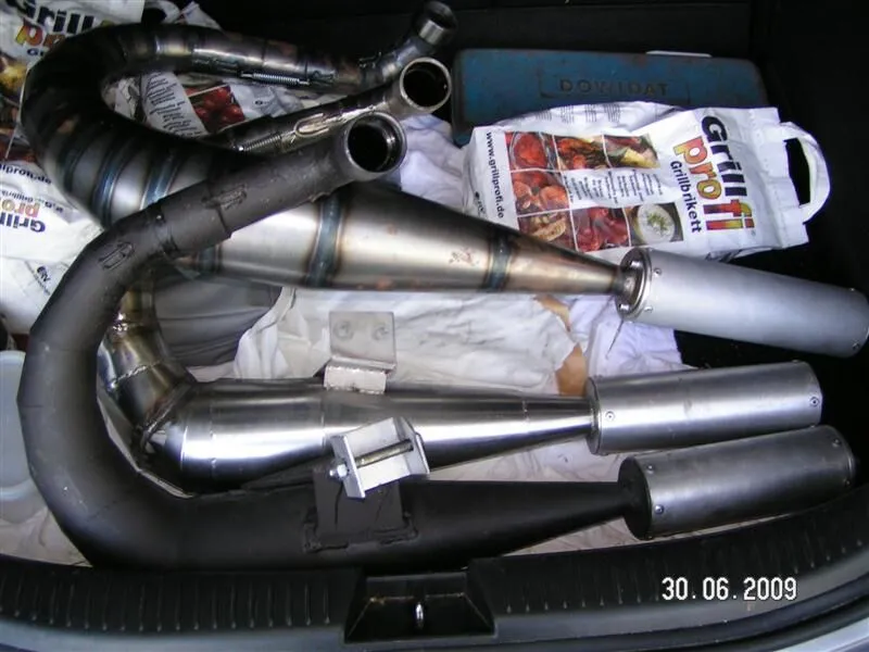 So weiter gehts, mal nen Kofferaum voller Auspüffe gesammelt. Am Dienstag ist der erste Prüfstandstermin mit 5 Anlagen, da ist dann die Mühle auch schon getüvt....hoff ich mal. Das findet am Montag ohne meine Anwesenheit statt.
