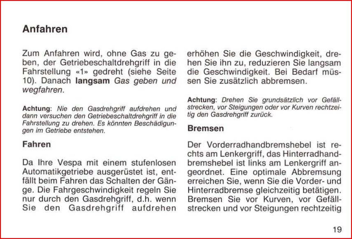 • Bei einer Automatik niemals bei laufendem Motor schalten. Wenn du das Gerät rollen möchtest auf "0". Wenn du los fahren möchtest schiebst du sie ein wenig und drehst dabei leicht in Richtung "1" An einem bestimmten Punkt wird eingekuppelt und sie lässt sich nicht mehr schieben. Erst dann startest du den Motor & kannst losdüsen. Vielleicht konnte ich ja etwas helfen.