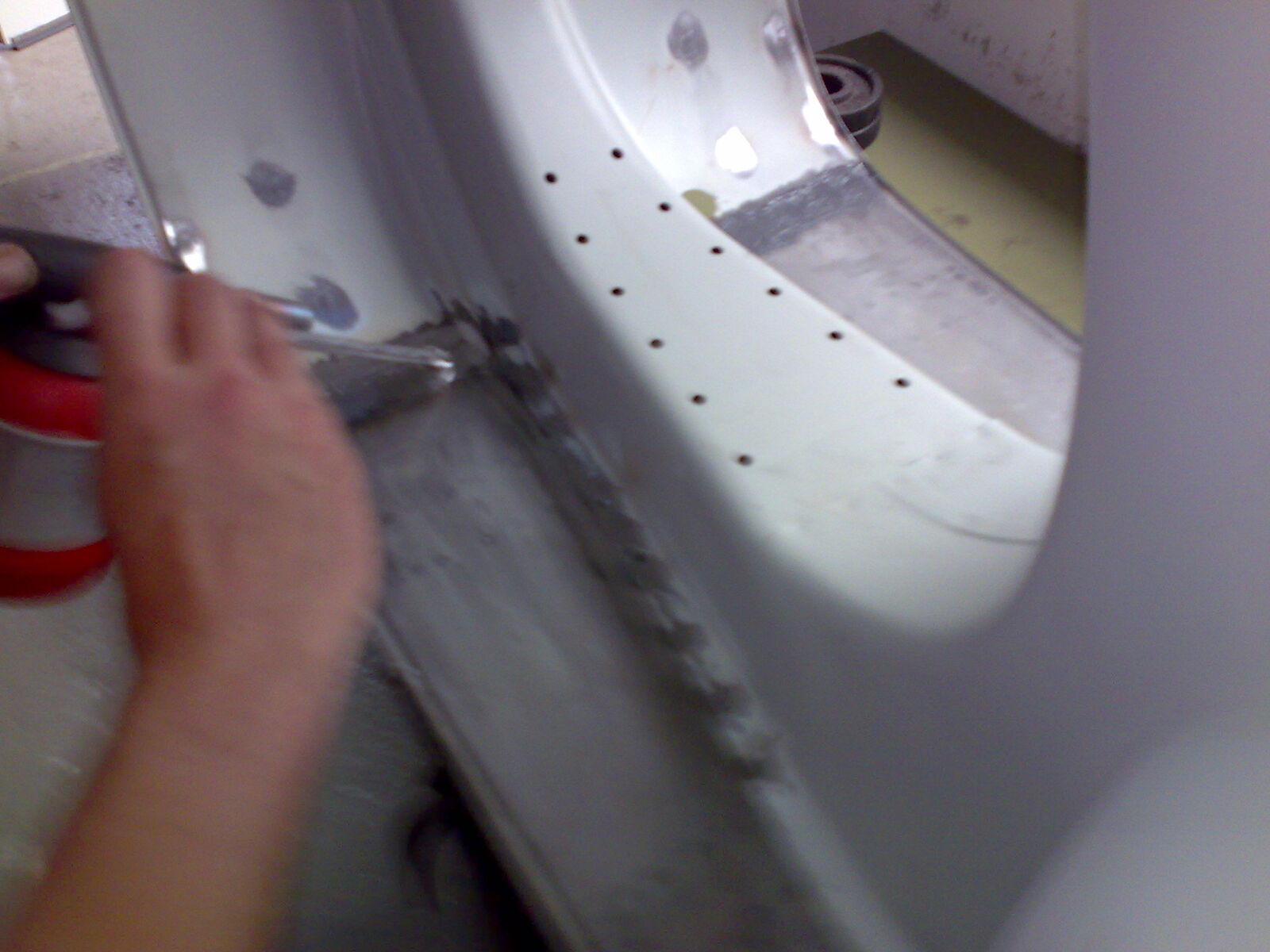 In der Werkstatt angekommen, das Teil angefangen zu zerlegen bis auf die letzte Schraube. Dann die offensichtlichen Vibrationsrisse und Rostlöcher verschweist und voller Hoffnung zum Sandstrahlen gebracht. Das Strahlen brachte dann leider doch einige Roststellen zum Vorschein, was dazu führte, dass nun doch das Trittblech getauscht wird - soll ja schließlich hinterher dastehen wie neu. Vor der Schweißarbeit noch kurz grundiert, damit das schöne Blech nicht gleich wieder Lochfraß ansetzt. Wenn des Blech drin is wird naßgeschliffen und nochmal grundiert. Als Lack hab ich mir den O-Lack bei Mr. VespaGS bestellt. Wird Europagrün ![]()