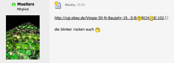 Ist halt das übliche ebay-Dummgelaber, alles megarar, superselten und gesucht. Da werden auch abgerockte PX 80 Lusso als super seltene, heutzutage kaum noch zu findende Kultroller angeboten.