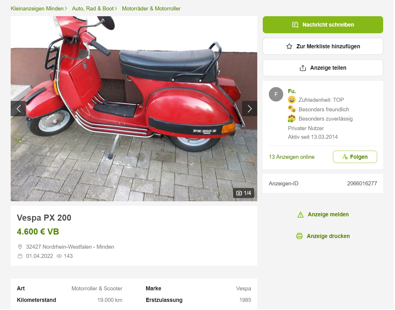 Und über den Preis muss man nicht reden.Geht dafür niemals weg, egal wie was wo für ne Karre das ist.