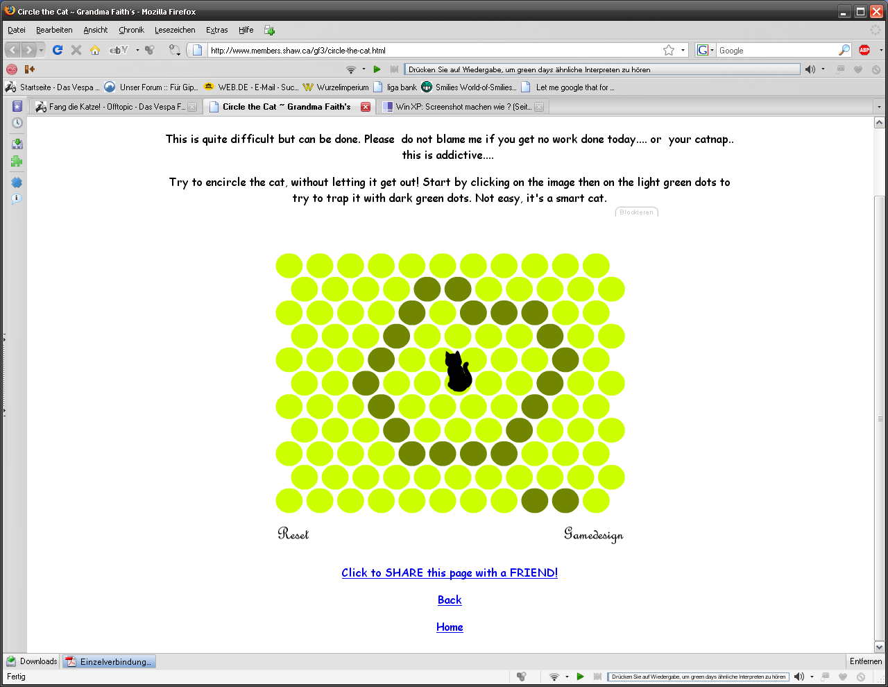 ich lieb solche bescheuerten spielchen, hat mich an das häschenspiel erinnert, und jetzt bin ich wieder davon gefangen...
