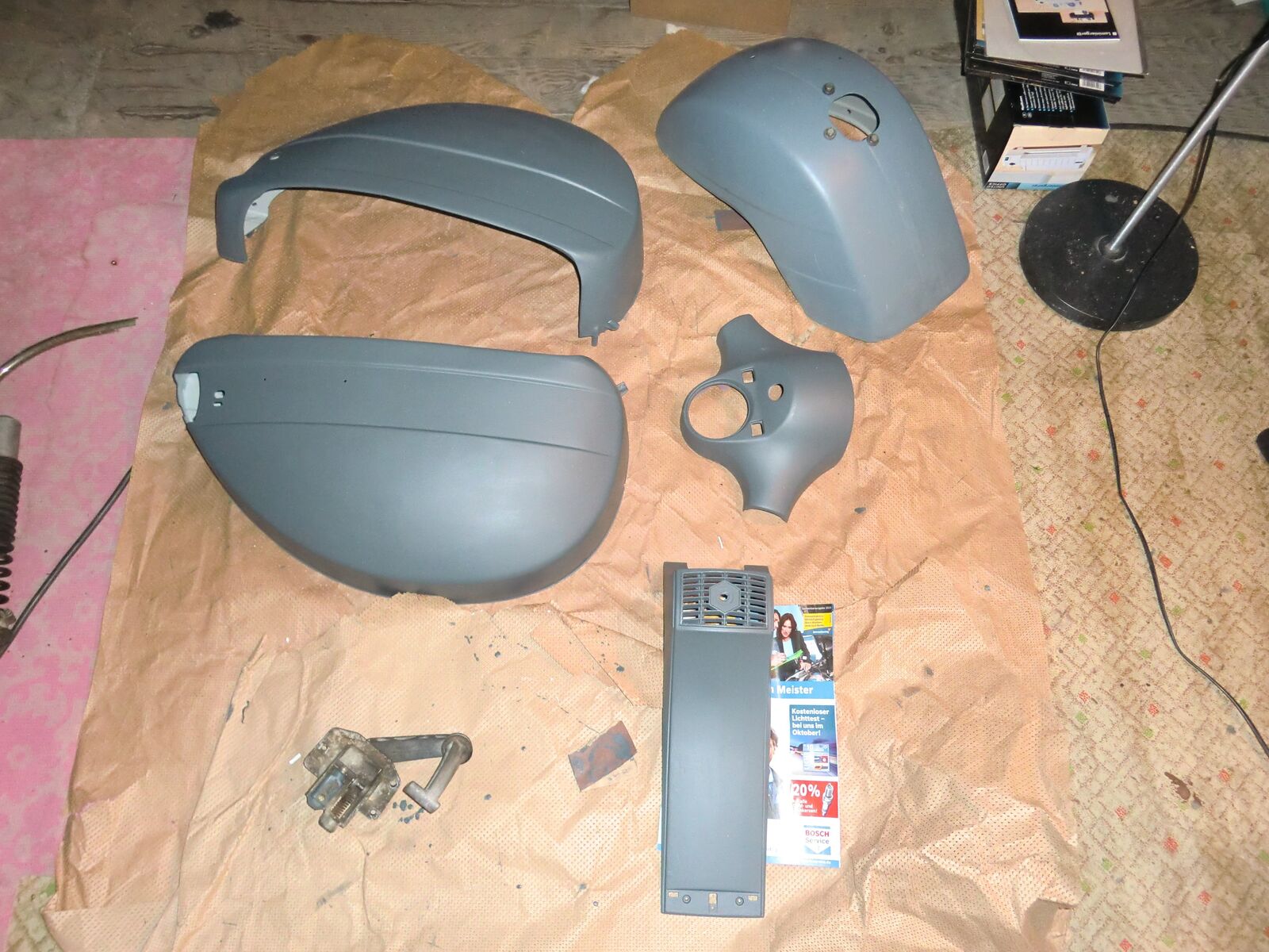 Ich werde die Tage dann die zweite und dritte Schicht aufrollern (Geil! Farbe rollern, ist wie Roller! Passt doch, wir fahren ja auch keine Lacker sonder Roller :) )