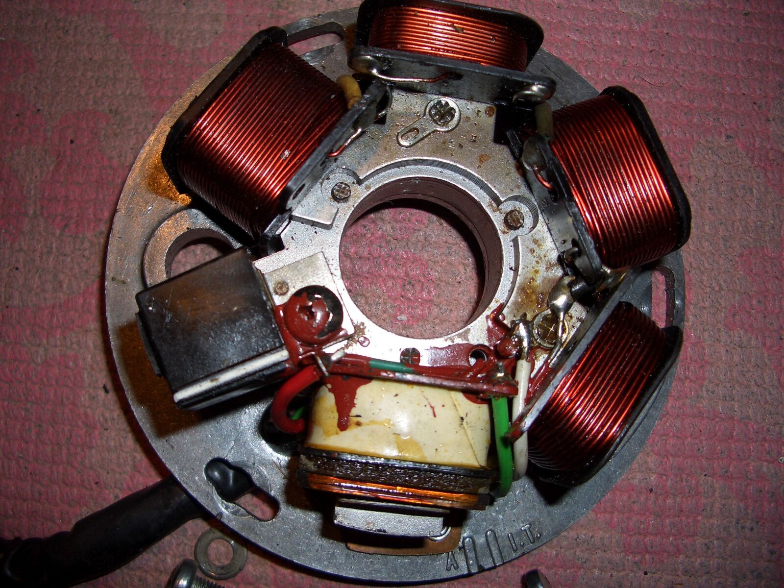 Meine Px ist Baujahr 81, hat Aussenverschlüsse, Batterie, ein rundes Blinkerrelais mit 2 Polen und einen Gleichrichter (siehe Fotos oben, das sind die vor der Renovierung). Die Zündgrundplatte hat 7 Kabel.Wo bekomme ich einen neuen her?