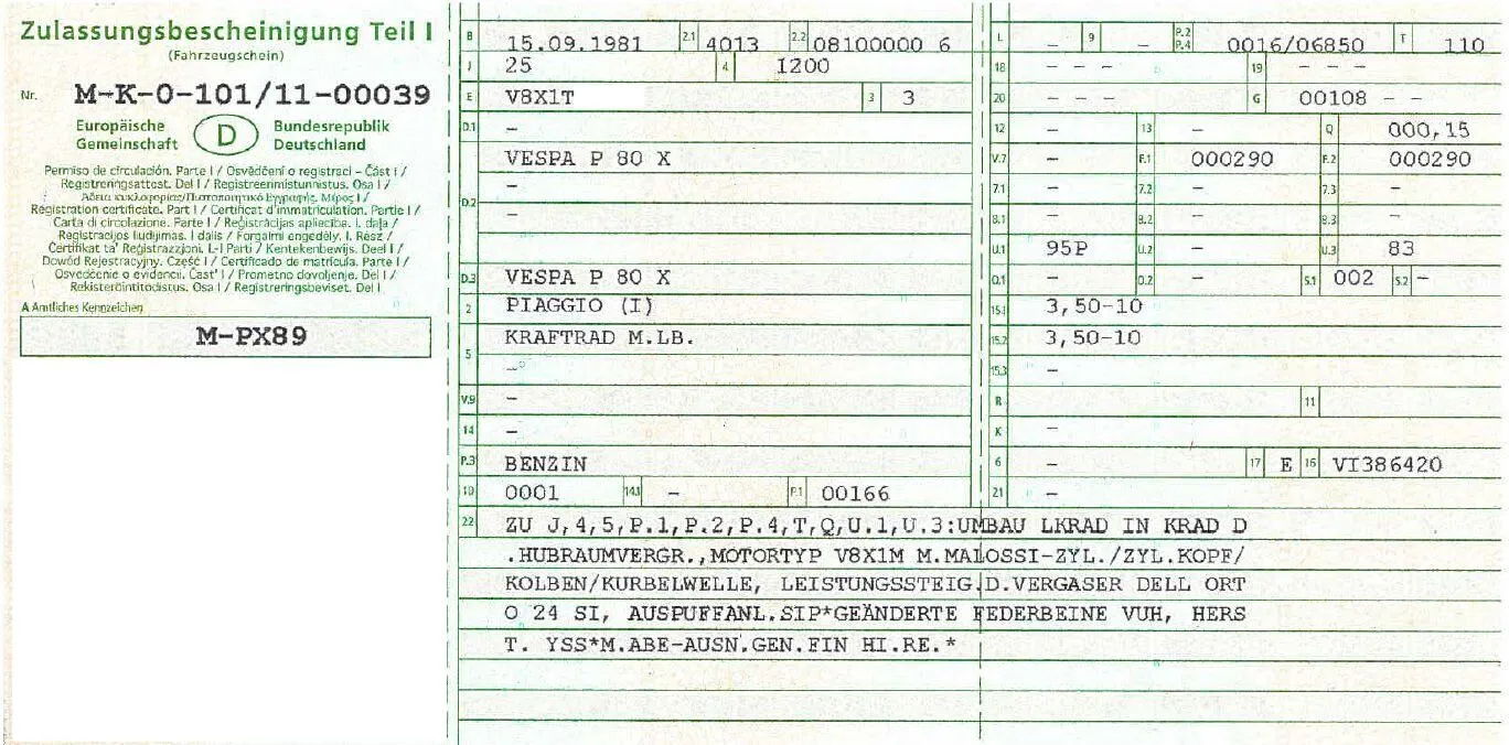 50N V50Spezial, PK80S, PX200 alt, Bajaj Chetak mit Cozy, PK50XL, dt. V50 Rundkopf