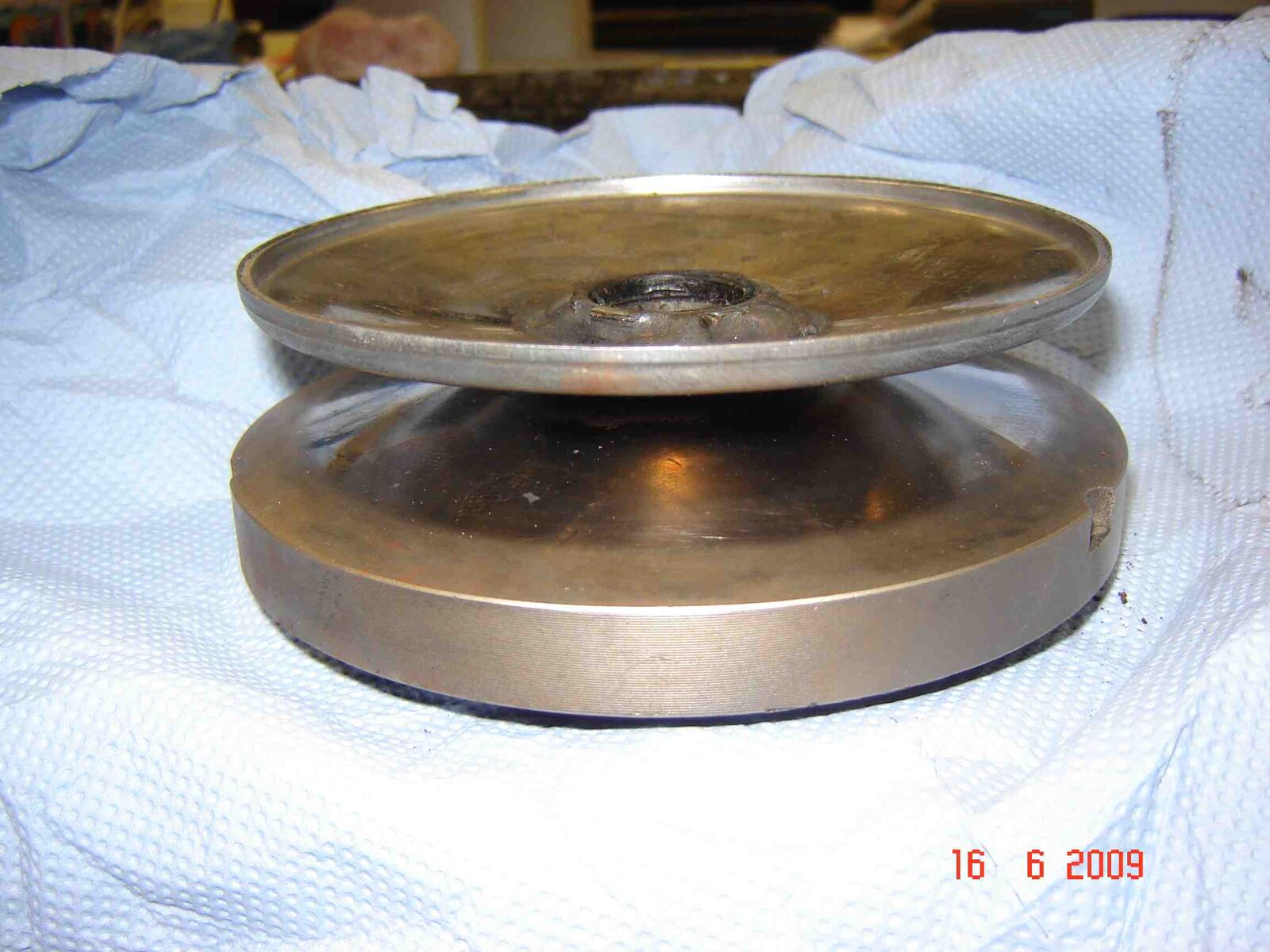 (siehe Bilder....links die neue Scheibe, rechts meine alte Scheibe mit Gewichte)