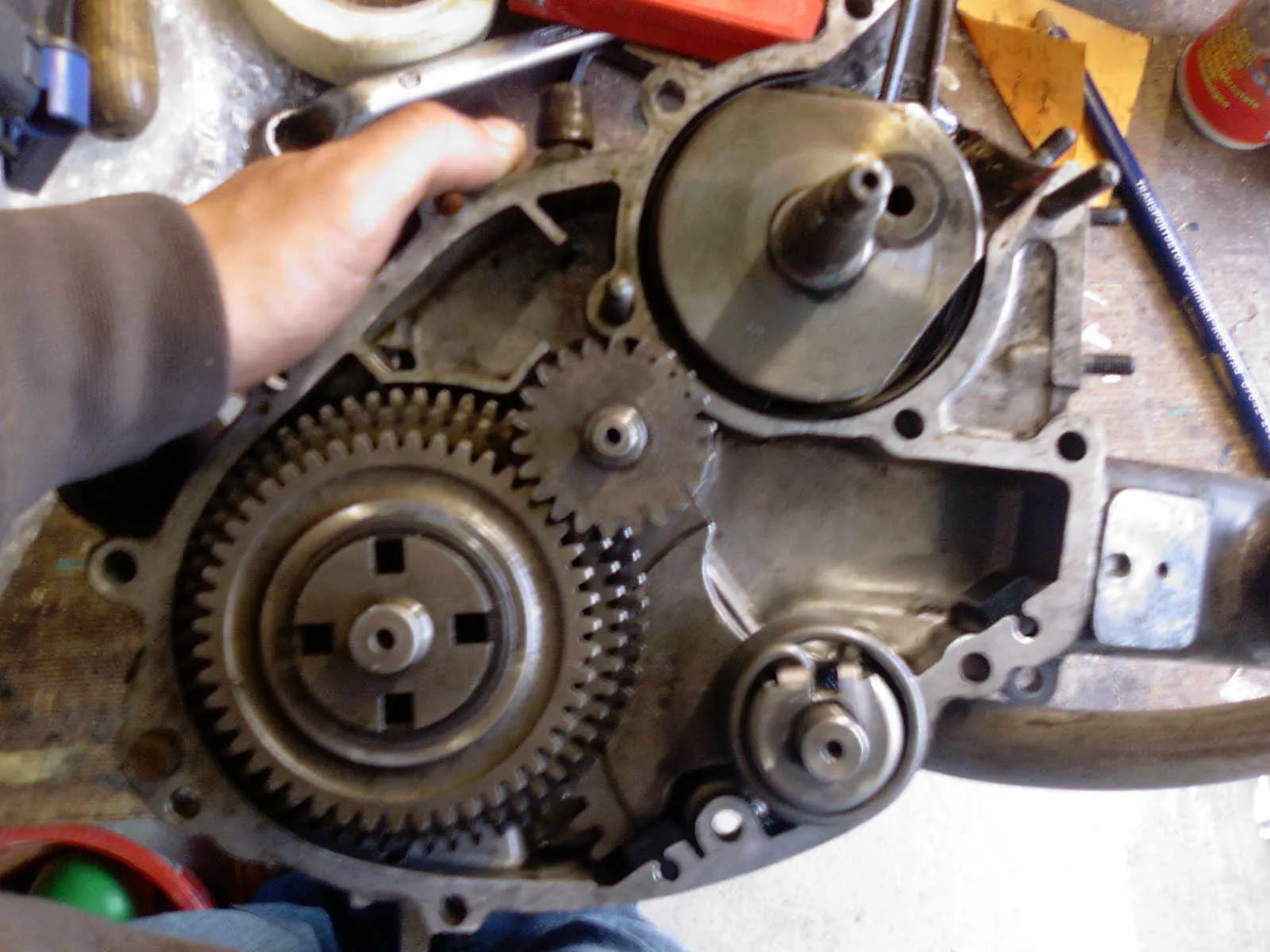 habe heute angefangen meinen motor zu spalten. ich will die simmerringe,die dichtungen und das schaltkreuz falls nötig wechseln.
