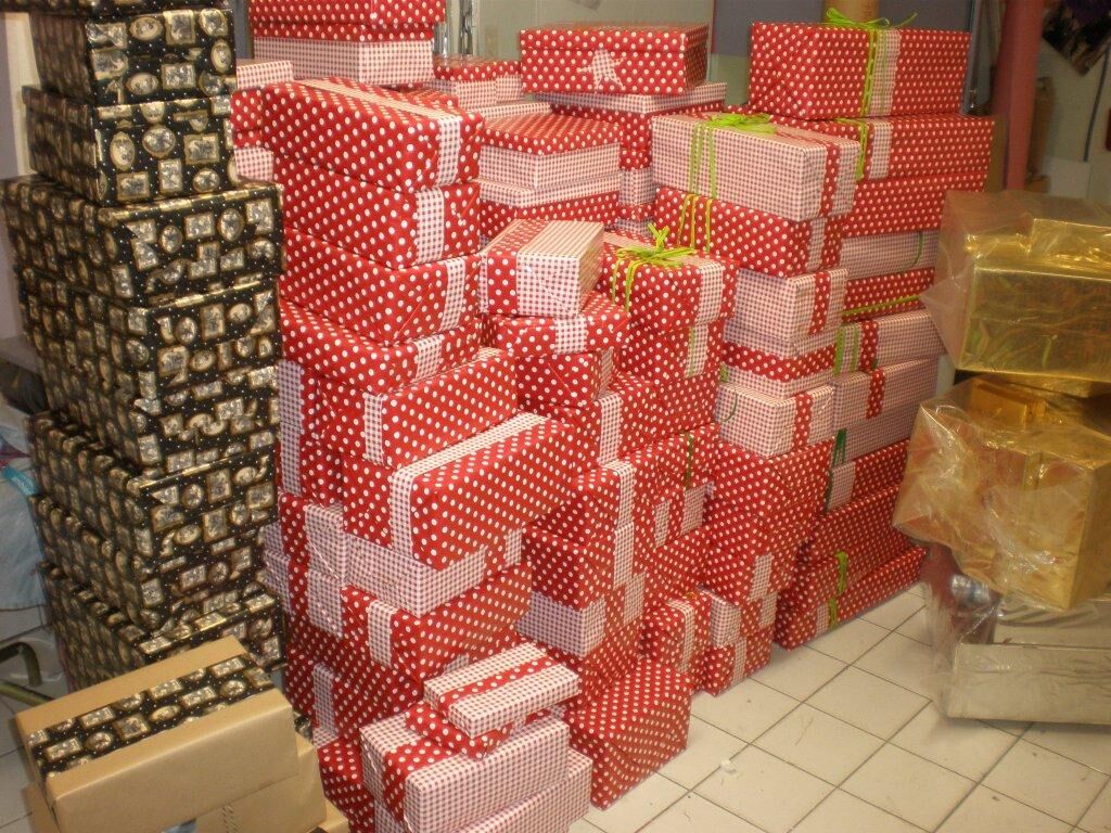 Sieht ja aus wie in einer Annahmestelle von Weihnachten im Schuhkarton