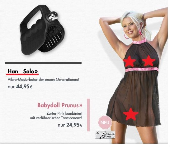 Aber aus Hand Solo wird halt schnell mal ein Han SoloDie Sterne drüber waren echt nötig, die Gute hat da drunter schön Blank gezogen.