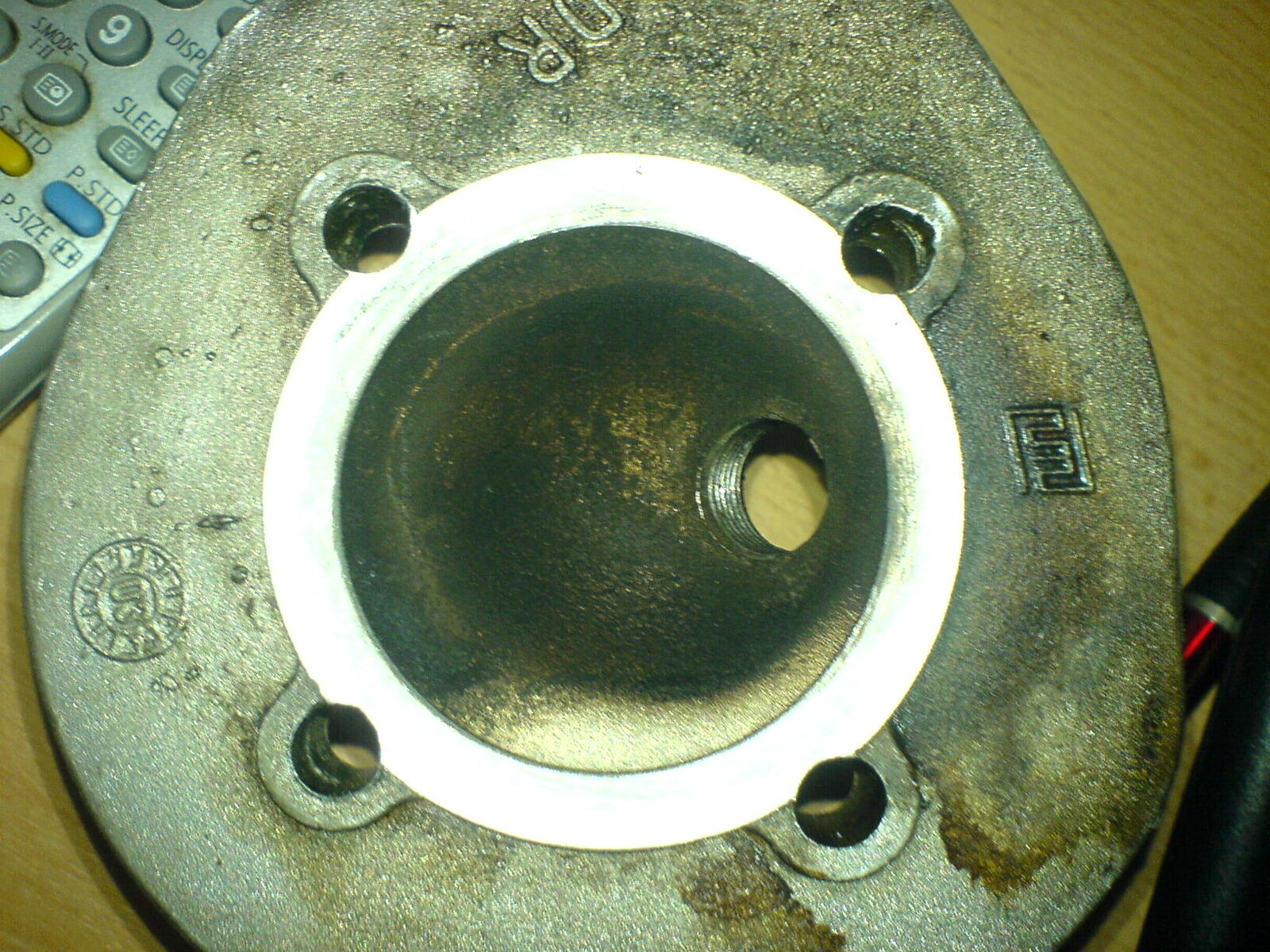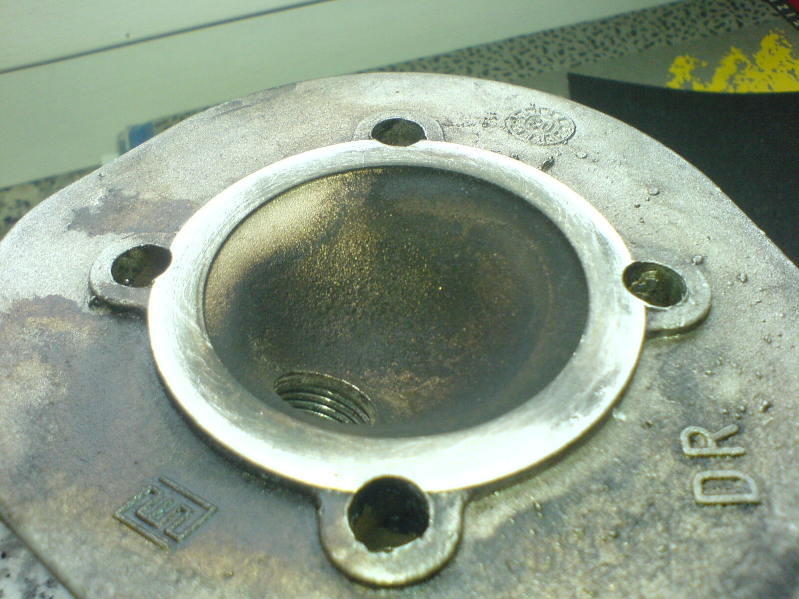 habe seit ein paar wochen einen DR 75 mit 3 überströmern auf meiner pk50xl2 baujahr 91. mir ist nun aufgefallen, dass der zylinderkopf nicht richtig dicht ist. ich habe dann versucht die schrauben nachzuziehen(natürlich ohne drehmomentschlüssel :dash: ) und habe dabei eine der schrauben abgebrochen... aber ich denke die kann man ersetzen oder? ich habe auch mal ein paar bilder von dem zyli gemacht damit ihr euch die ma anschaut weil der dr irgendwie an leistung verloren hat... am anfang (nach der einfahrzeit) war es zu zweit gar kein problem 50 -60 zu fahren je nach wind, steigung usw aber letztens ging auf einmal nix mehr über 40... sie hat die ersten 3 gänge gut ausgedreht aber im 4. kam sie nicht auf touren...kann das mit der undichtigkeit zusammenhängen? guckt euch bitte mal die bilder an und sagt mir ob mit dem zyli noch alles in ordnung ist!