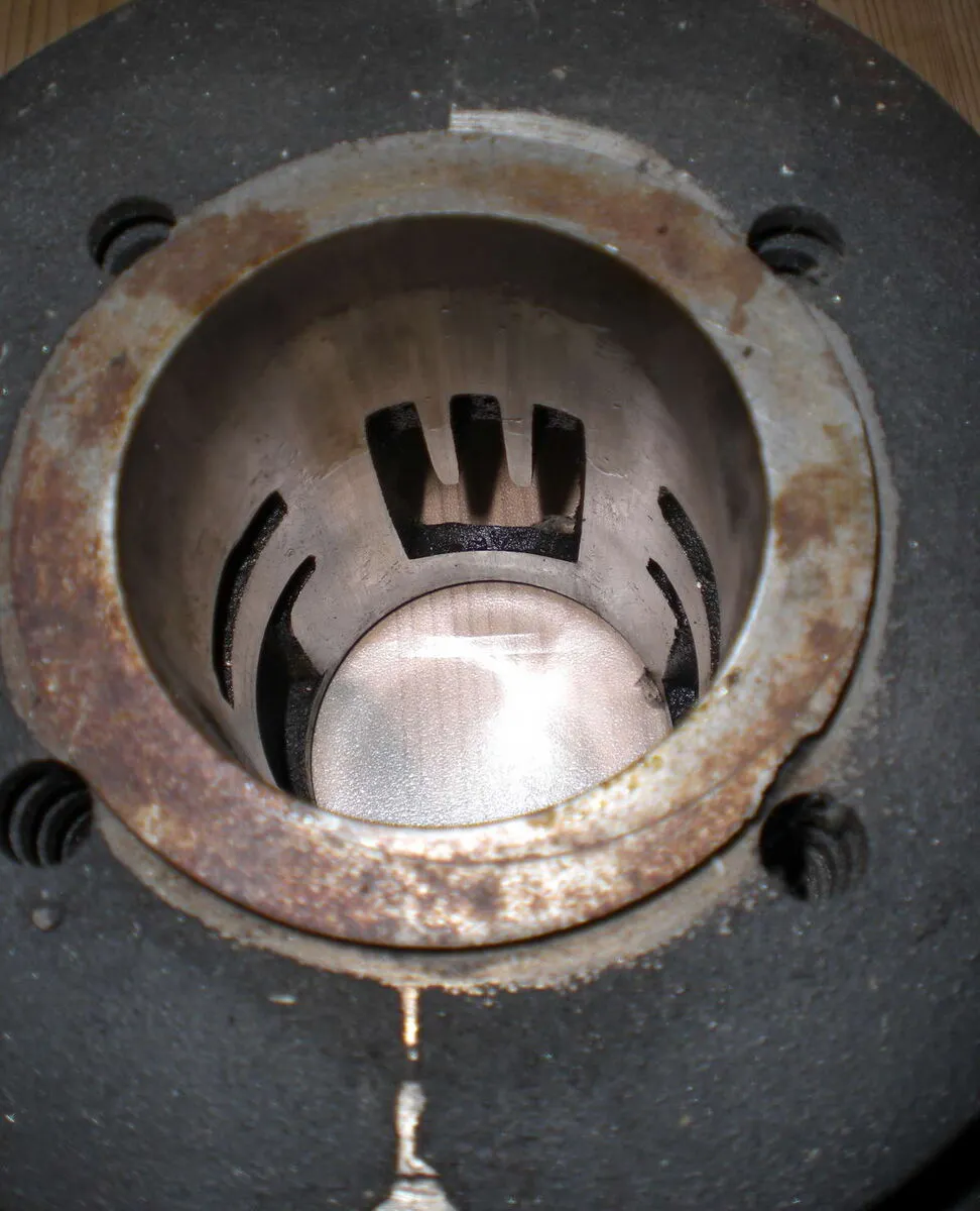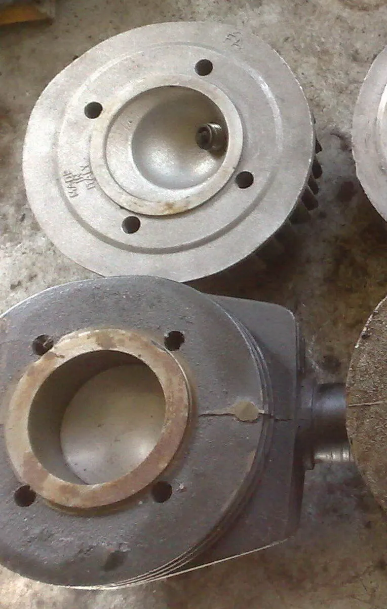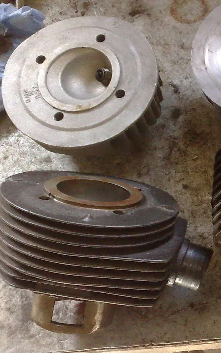 Dabei waren zwei 80er *schnarch*, ein 125er mit abgedrehten Fuß fürs 80er Gehäuse und ein nicht originaler Zylinder, neuwertig, mit Kolben und Kopf und untenrum übelst mit Flex oder Bandschleifer bearbeitet.