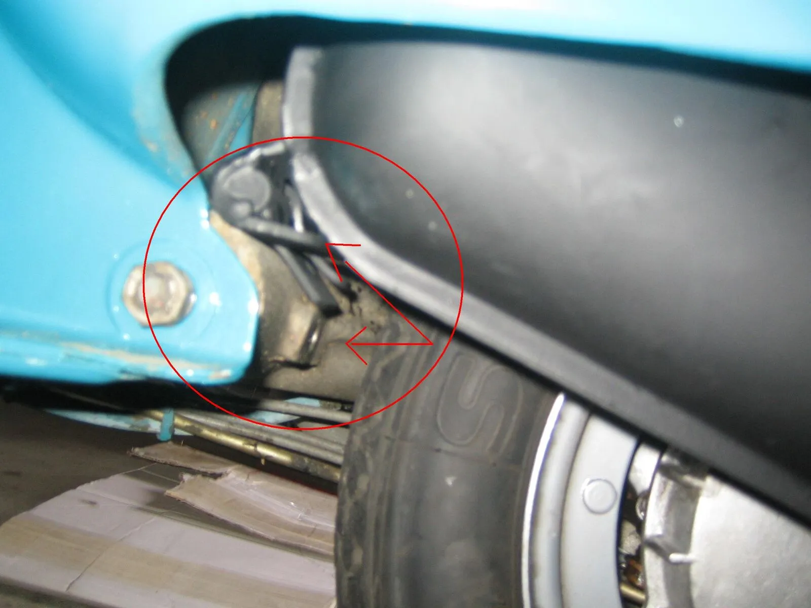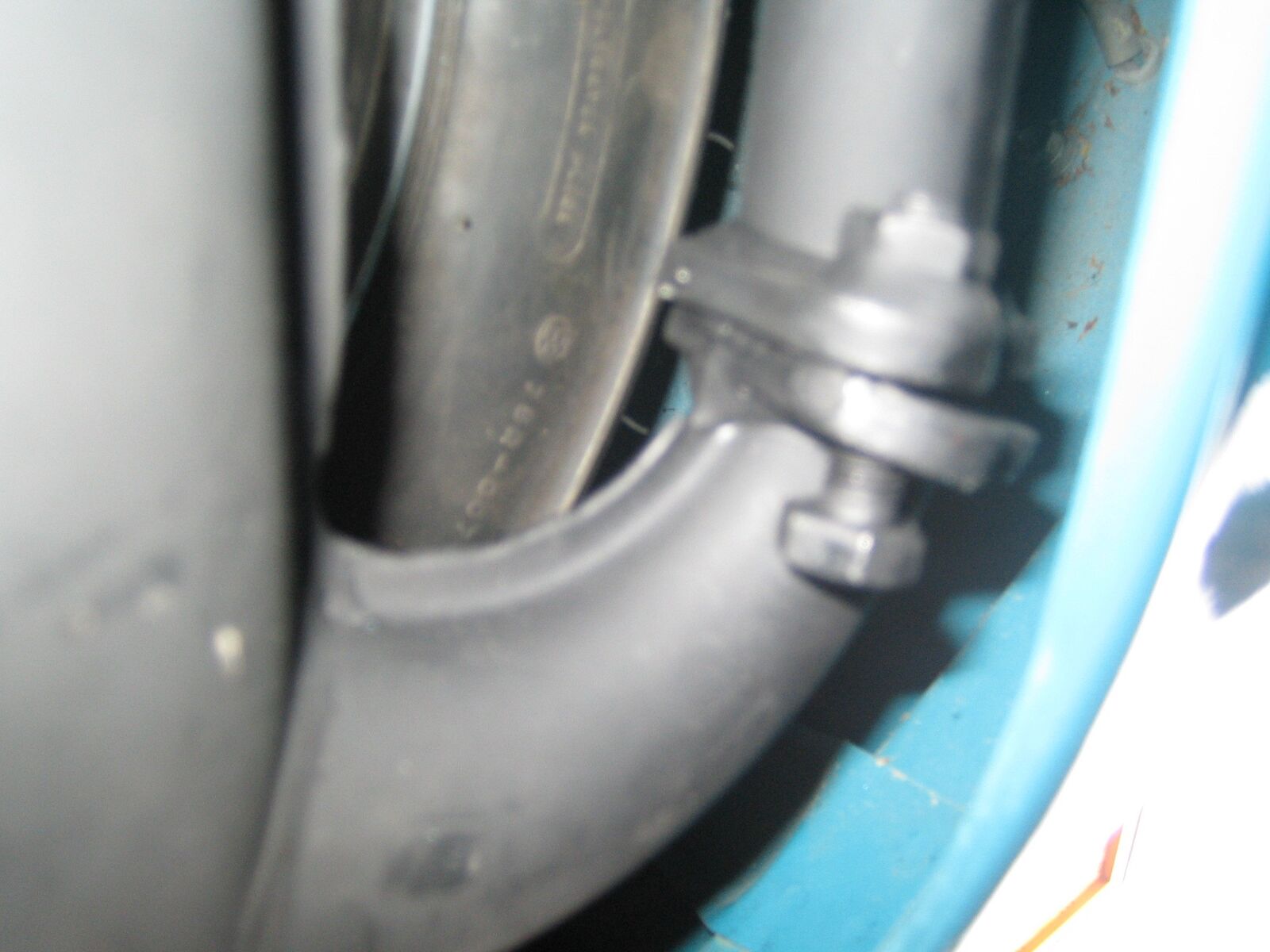 Den mitgelieferten Krümmer befestigt, dann das Rad wieder rangeschraubt und den Krümmer festgezogen, sodass er NICHT am Rad streift !! Das hat noch geklappt. So jetzt hab ich mal meine Banane hingehoben und diese Befestigungsplatte, wo die Schraube in den Querbalken von Motorblock muss, passt NICHT !! Hab jetzt eine Schraube, die die Banane am Krümmer hält, leicht anegschraubt, zum schauen ob es passt, aber das ist unmöglich !!