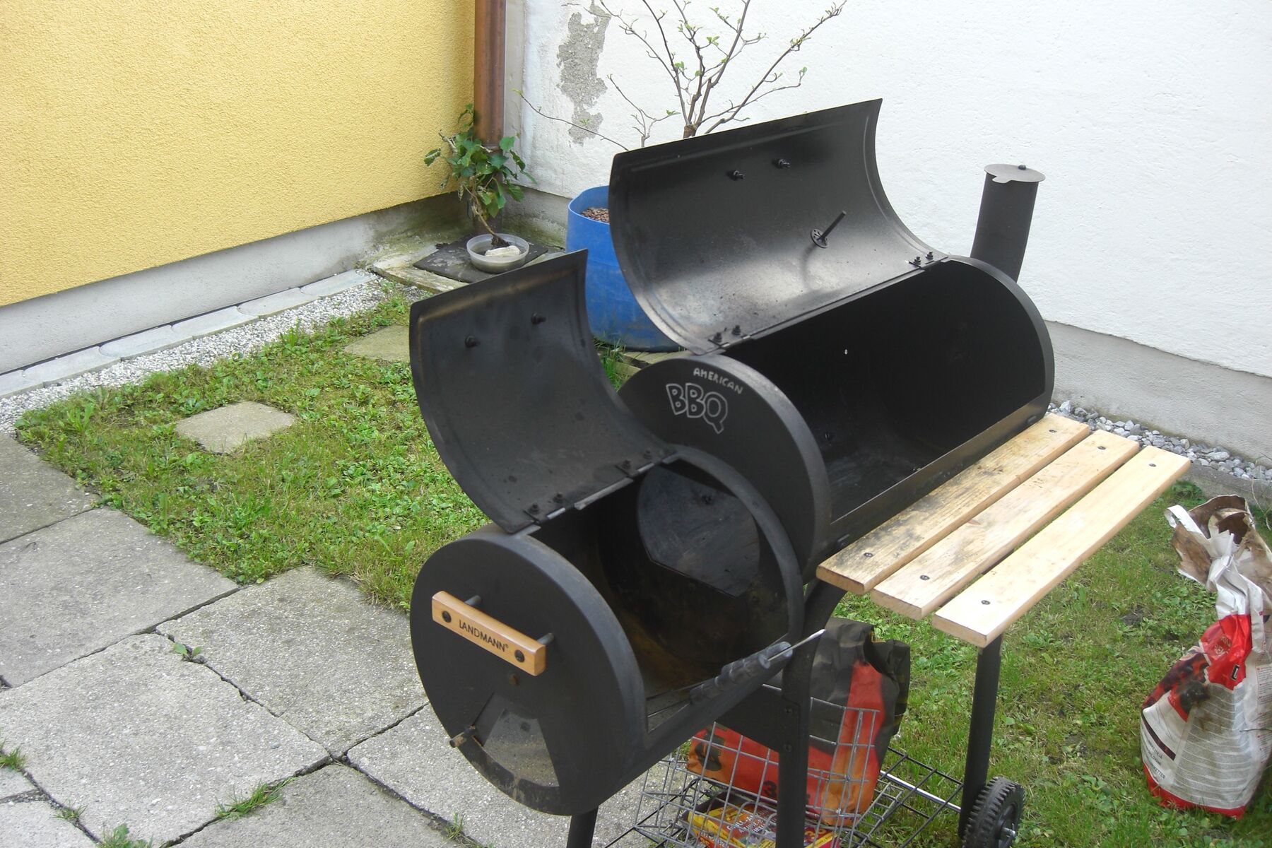 So aber nun zeig ich euch meinen Smoker(links) und mein Krematorium(rechts)