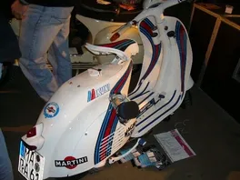 Noch ne Martini-Vespa fänd ich jetzt net ganz soo einfallsreich. Es gibt ne PX - aufgebaut von czscooterist (GSF) die fährt inzwischen in Österreich rum und is das non plus ultra in sachen PX-Umbau. Und dann gibts da noch nen Oldiumbau der auch hammergeil geamacht is. Stand auf der Customshow in München - foto hab ich da mal angehängt.