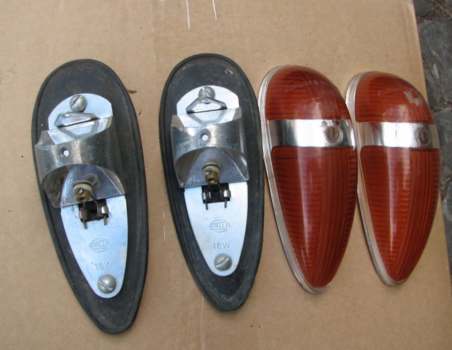 Das könnten ganz normale Hella-Oldtimerlampen sein. Habe solche ähnlichen mal an älteren PKW gesehen, Lloyd Alexander, Gogomobil, Messerschmitt und ähnlichen. Besonders weil es sich anscheinen um Blinker und Licht in einem Gehäuse handeln könnte, sieht auf jeden Fall so aus. Wenn zwei Glühlampen verbaut werden, ist es kein reiner Blinker, auch die 18Watt machen mich etwas stutzig und die rote und orange Farbe, schimmert mir so auf den Bildern.