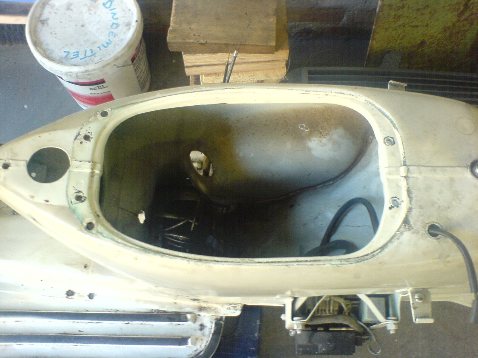 Mit nem Lappen auswischen geht schon obenrum, aber diese Ölschlammasse ganz unten drin drückt sich beim Fahren unter den Schrauben der Ständerbefestigung raus. Naja, sieht halt nicht dolle aus, auf und unter dem Trittbrett.