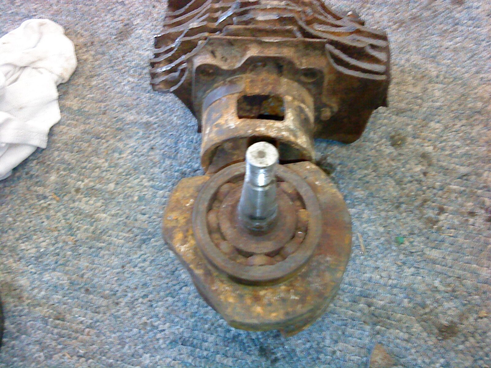 Kurbelwelle, Lager, Pleul, Kolben und Zylinder sind nun 1 Teil vor lauter Rost, als ich eines der KuWe Lager rausklopfte brach die äussere Lagerschale in 2 Teile