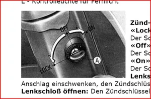 bei der pk s steht das schloss frei rum in einer hülse.über dem handschuhfach...