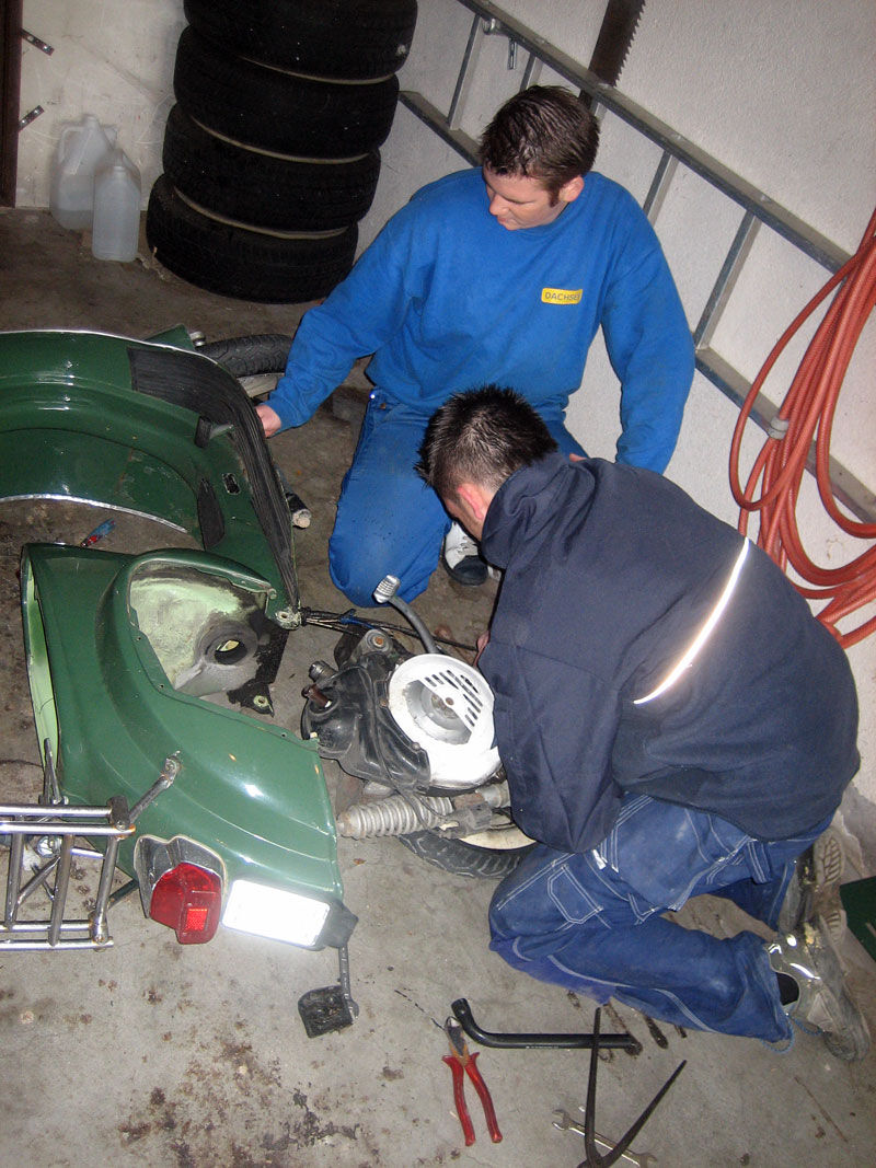 So heute hab ich angefangen meine Vespa zu zerlegen! Damit Sie demnächst sandgestrahlt und lackiert werden kann! Das ist meine erste Restauration von daher wären ein paar tipps vielleicht nicht schlecht! Was mir sorgen bereitet ist ob ich die Elektrik wieder verlegt bekomme! Ich habe vor nach dem lackieren einen neuen Kabelbaum zu verlegen! (das ist bis jetzt ein ziemliches "gemurxe") Ist es schwer den Kabelbaum wieder zu verlegen? Ich werde ab sofort auch immer weiter berchten!