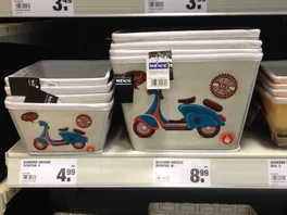 Hatte dieses Roller Dekor letztes Jahr bei unserem örtlichen Hagebaumarkt auch schon mal gesehen. Da gibt es auch noch Papierkörbe, eine Sitztonne und sogar einen Klodeckel. :D Nur schade, dass das Dekor so wenig Vespa-like ist.