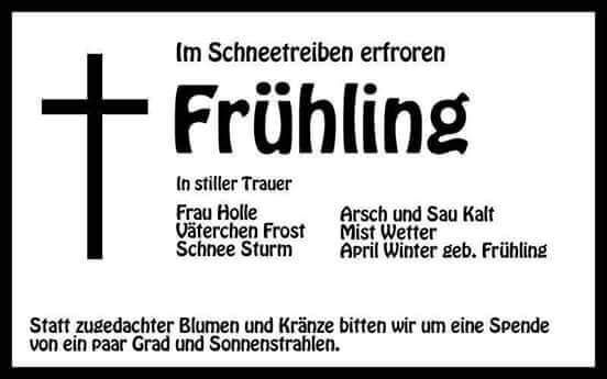 Dann muss bei dir, wie frĂŒher, wieder eine Ente (Döschewo) her. Die frisst sich die Schnecken dann wieder selbst vom Arsch ab. Zumindest, wenn es eine Laufente ist. ![]()