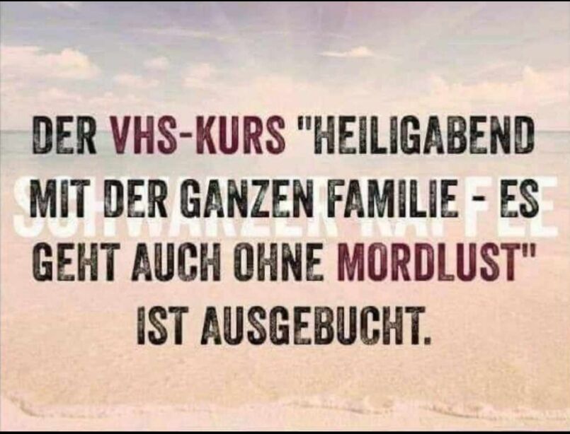 ich probiere dieses Jahr was ganz neues , Familie hab ich eh keine mehr , daher aus gegebenen Anlass , Weihnachten ausschließlich mit Nachbarn und Freunden verbringen da kann quasi kein Streit aufkommen , befĂŒrchte zwar alle drei Tage völlig besoffen zu sein aber kann ja auch schön sein.