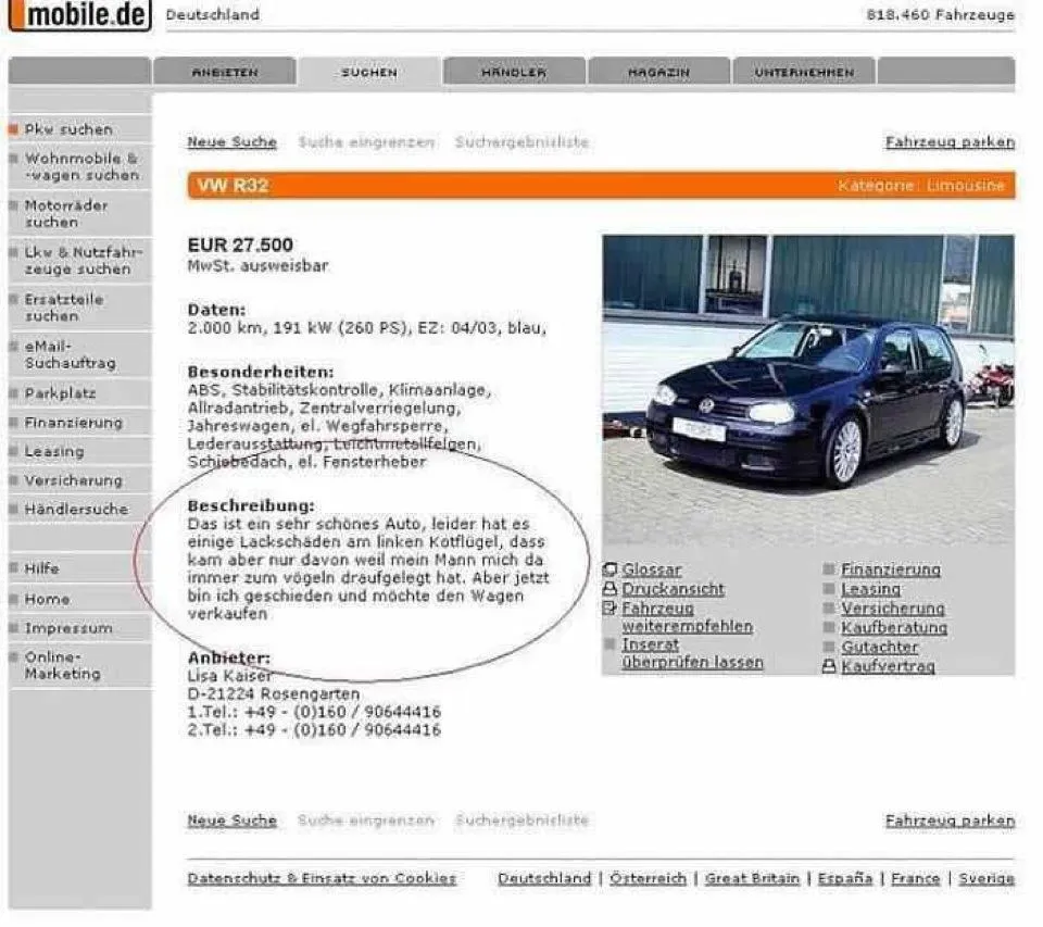 die weiss wie mann ein auto anbietet und sich vtl. auch gleich mit