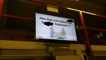 Das ist jetzt wohl neu bei uns inner bude das in den Abteilungen auf den monitoren die Geburtstage der malocher angezeigt werden.